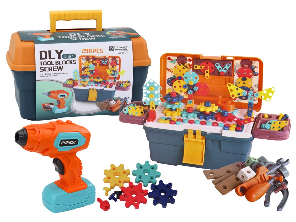 V sade sa nachádza vŕtačka s ergonomickými rukoväťami, ktoré sú ideálne prispôsobené pre malé ruky, a rôzne typy skrutiek a nástrojov, ktoré uľahčujú montáž. Vďaka nim sa dieťa môže cítiť ako skutočný konštruktér, staviaci svoje vlastné konštrukcie.