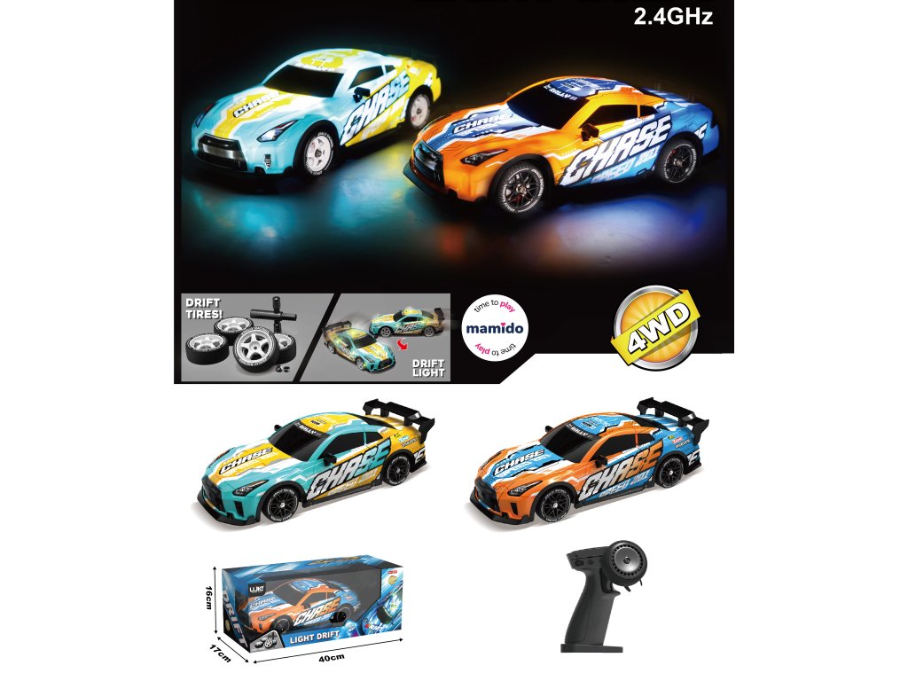 Výkonné RC drift auto v měřítku 1:16 prináša realistický zážitok z jazdy. Vďaka pohonu všetkých štyroch kolies 4x4, sade špeciálnych driftovacích pneumatík a presnému 2.4GHz ovládaniu zvláda ostré zákruty aj kontrolované šmyky. Model je navyše vybavený LED svetlami, ktoré zvýrazňujú efekt pri nočnej jazde.