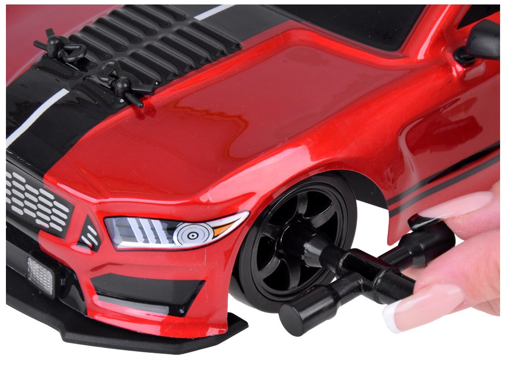 - Možnosť driftovania: Špeciálne hladké pneumatiky umožňujú efektnú jazdu bokom. Súčasťou balenia sú aj pneumatiky so vzorkou pre jazdu v teréne.
