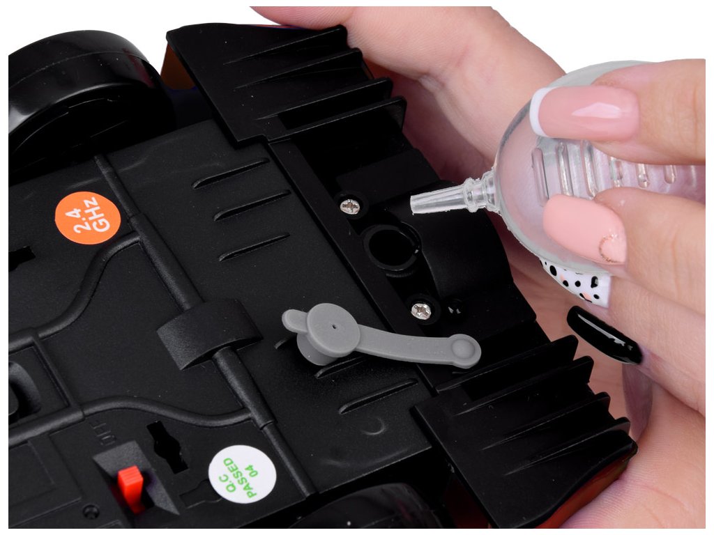 - Dymový efekt: Pri doplňovaní vody do nádrže vypúšťa auto z výfuku dym, ktorý dodáva vozidlu na realistickosti a zvyšuje zábavu.