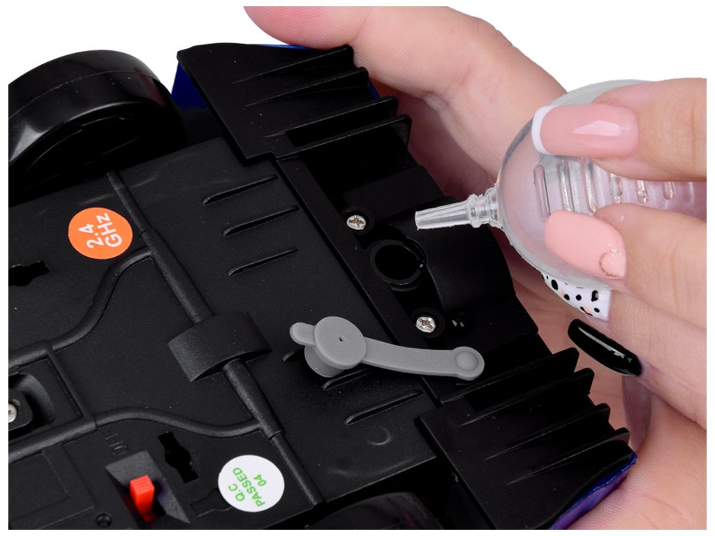- Dymový efekt: Pri doplňovaní vody do nádrže vypúšťa auto z výfuku dym, ktorý dodáva vozidlu na realistickosti a zvyšuje zábavu.