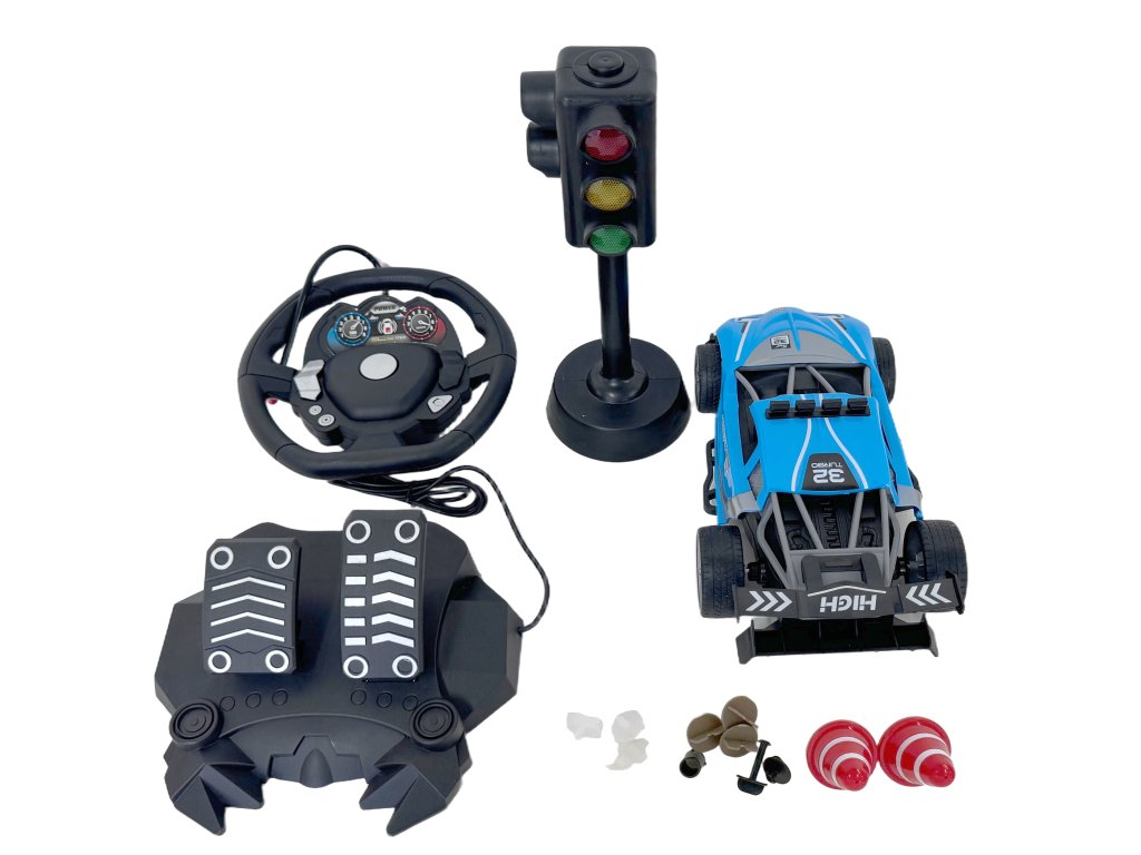 Auto na diaľkové ovládanie 1:16 pretekársky model s volantom, pedálmi a semaformi modré MT1345