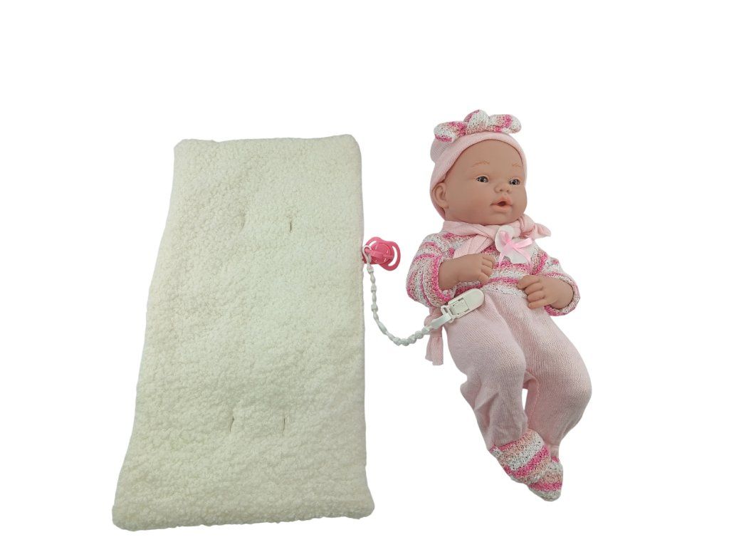 Bábika v ružovom oblečení je skvelou spoločníčkou pre každú malú opatrovateľku. Jej roztomilý svetrík v bielo-ružových pruhoch, čiapočka a šál jej dodávajú šarm. Má pohyblivé ruky a nohy, ktoré sa dajú ľahko nastaviť do rôznych pozícií, čo pridáva na realizme a možnostiach interakcie počas hry. Táto roztomilá bábika bola vytvorená z bezpečných a odolných materiálov, čo zaisťuje deťom bezpečnú zábavu. Jej realistické črty, vrátane jemných detailov tváre, vyzerajú ako skutočné bábätko, čo jej dodáva kúzlo a motivuje deti, aby sa o ňu starali. Okrem toho je k súprave priložený cumlík na šnúrke, ktorý je pripnutý k oblečeniu bábiky, a mäkunká deka.