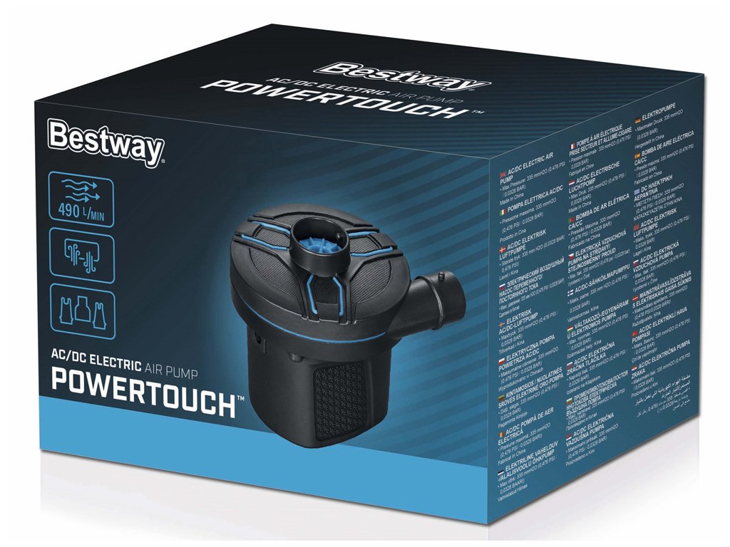 Bestway PowerTouch AC/DC je elektrická pumpa, ktorá sa hodí do domácnosti, na cesty, na kempovanie alebo na pláž. S jej pomocou ľahko a rýchlo nafúknete ako matrac na spanie, tak kreslo, kruh na plávanie a dokonca aj nafukovací bazén. Pumpa je vybavená 3 rôznymi nástavcami , takže pasuje na väčšinu nafukovacích produktov dostupných na trhu.