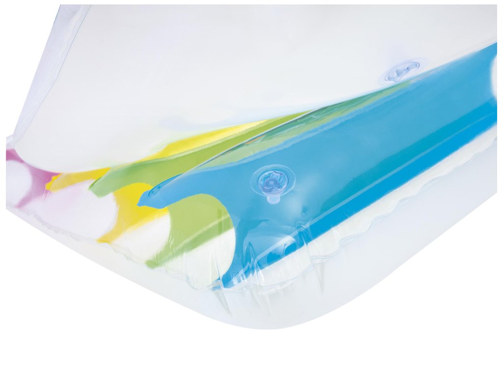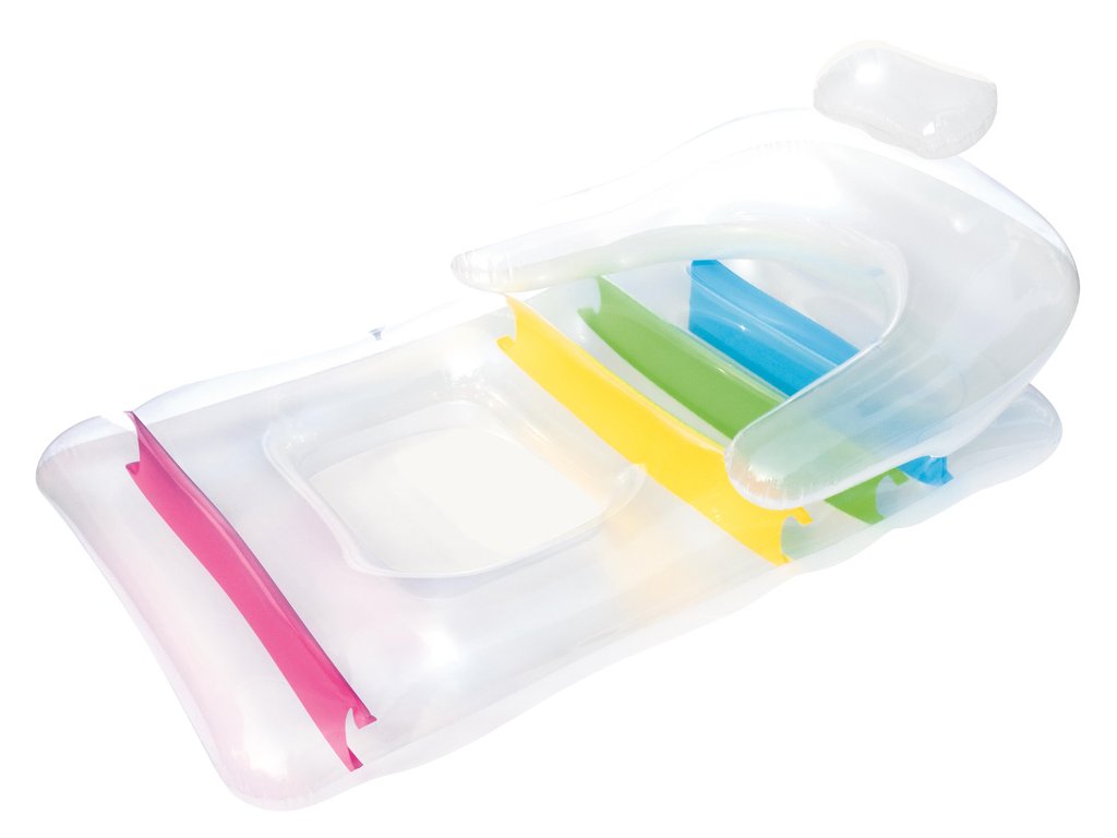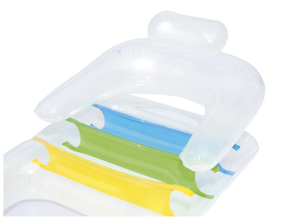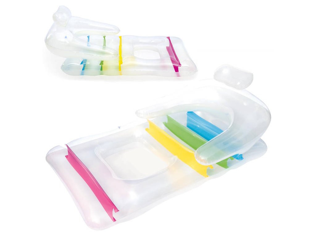 Úžasné nafukovacie lehátko s opierkou je ideálne pre letnú dovolenku pri mori, jazere alebo v domácom bazéne. Toto priehľadné kreslo v sýtych farbách skvele doplní letnú atmosféru a zaručí maximálnu relaxáciu.