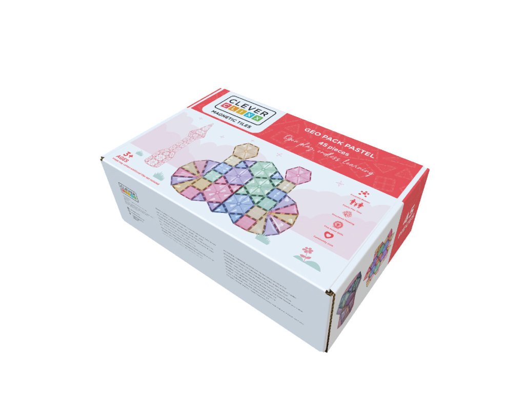 Objavte krásu geometrie v jemných pastelových tónoch s magnetickou stavebnicou Cleverclixx Geo Pack. Táto 45-dielna súprava je skvelým doplnkom k vašej existujúcej zbierke a predstavuje ideálny spôsob, ako zoznámiť deti s rôznymi tvarmi a ich využitím v 3D stavbách. Vďaka pestrej palete dielikov v jemných farbách bude každá konštrukcia nielen kreatívna, ale aj vizuálne atraktívna.