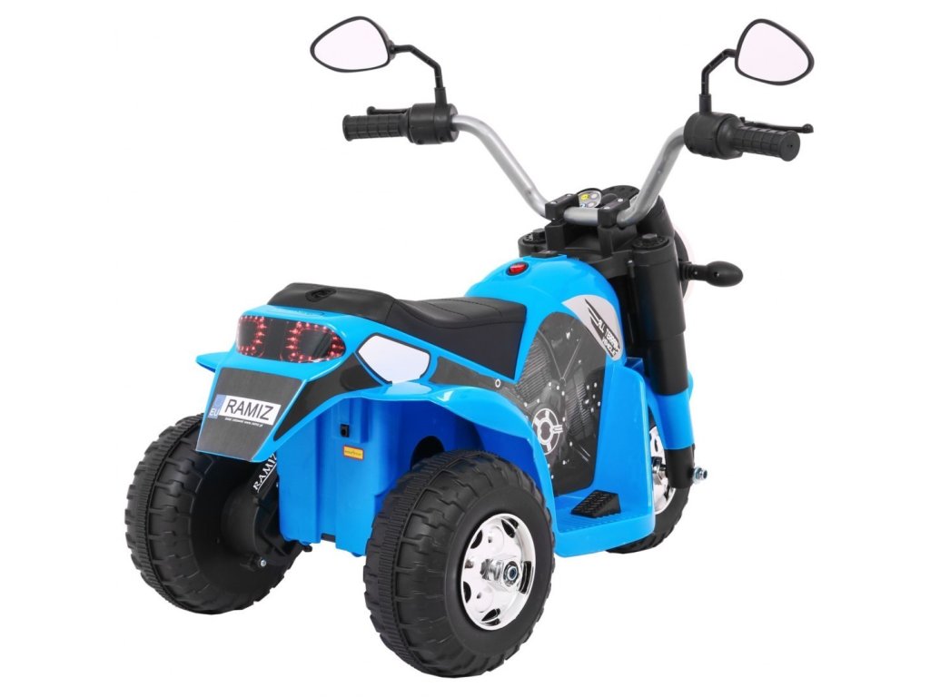Nielen fanúšikovia Harley si túto detskú elektrickú motorku zamilujú! Detská motorka v štýlovom dizajne má naozaj čo ponúknuť. Ako prvý sa musí spomenúť jej výbava. Motorka minibike má štýlové kožené sedačky vyrobené z eko kože pre pohodlie a správne usadenie dieťaťa, Pevná riadidlá, ktoré dodajú dieťaťu správny štýl drsného motorkára a spätné zrkadlá, aby mohlo dieťa sledovať, ako uteká rodičom a vietor sa mu ženie vo vlasoch. Pre ten správny pocit motorka vydáva zvuky pri naštartovaní a má ďalšie zvukové efekty. Motorka je vybavená LED svetlami, aby dieťa bolo vidieť aj keď už sa stmieva, pretože na tejto detskej motorke bude chcieť tráviť celé hodiny.