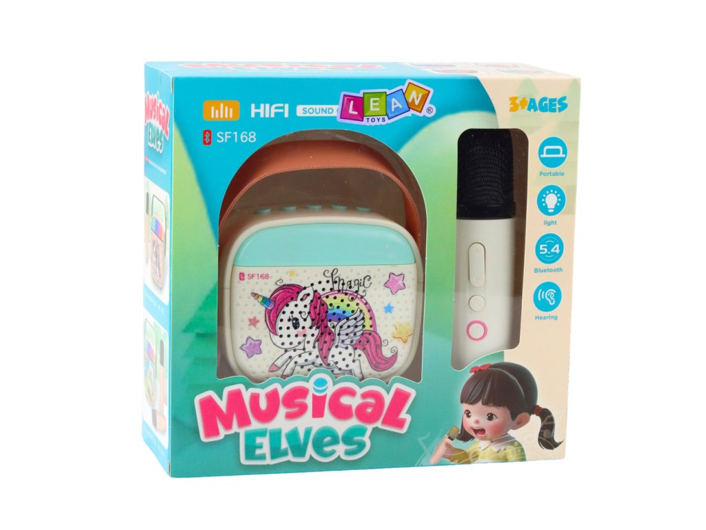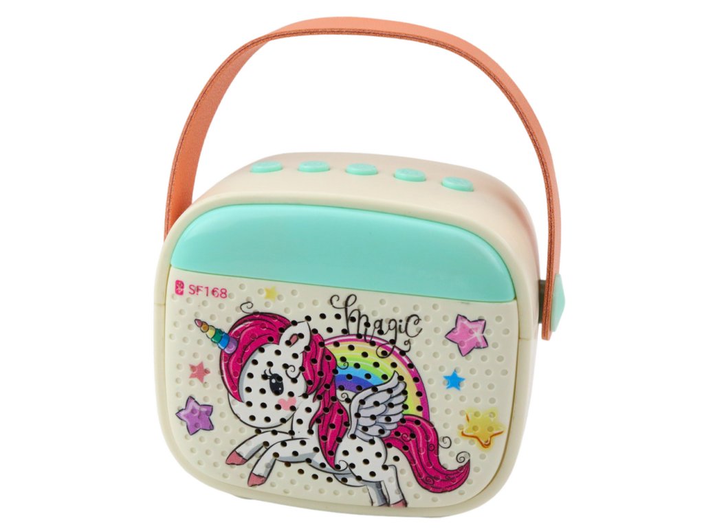 Táto karaoke sada s roztomilým motívom jednorožca je jedinečnou voľbou pre deti, ktoré rady spievajú, tancujú a napodobňujú pódiové vystúpenia. Farebný reproduktor Bluetooth s rozprávkovým dizajnom s motívom jednorožca upúta pozornosť a vďaka priloženému mikrofónu s funkciou zmeny hlasu sa každé vystúpenie stane nezabudnuteľným dobrodružstvom.