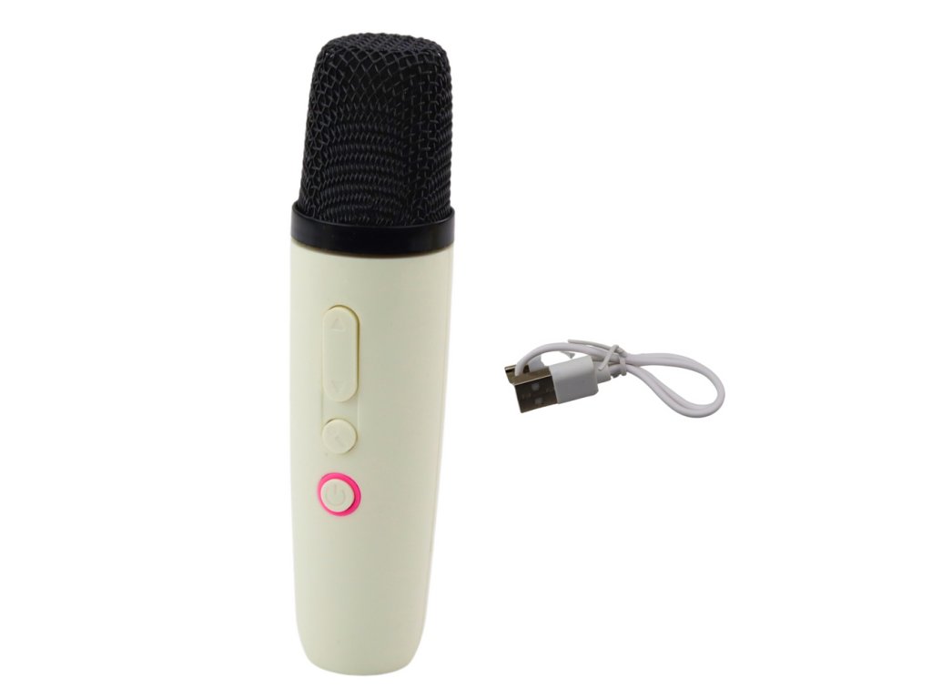 Zariadenie je vybavené dvoma nezávislými batériami - 800 mAh v reproduktore a 300 mAh v mikrofóne - pre hodiny nepretržitého prehrávania bez nutnosti častého nabíjania. Súčasťou balenia je kábel typu C na pohodlné a rýchle nabíjanie. Všetky súčasti sú vyrobené z vysoko kvalitného, bezpečného plastu, ktorý je odolný proti poškodeniu a vhodný pre deti.