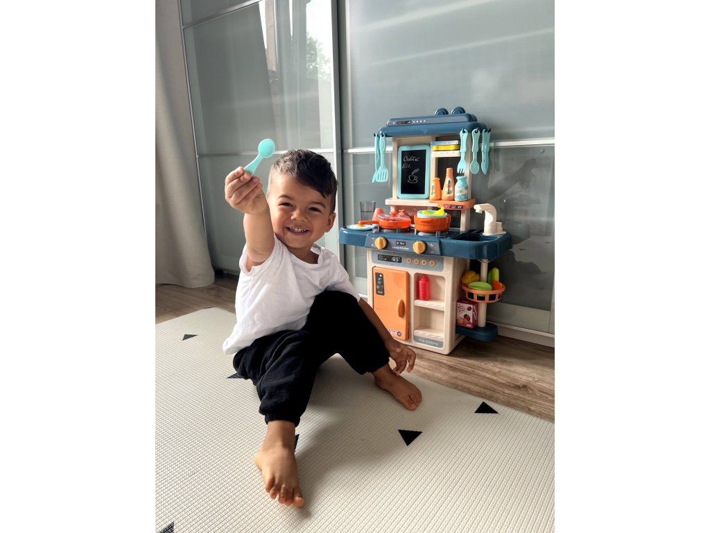Detská kuchynská sada skladajúce sa z 42 prvkov. V kuchyni je umývadlo s kohútikom, z ktorého odteká voda, dva indukčné horáky, pohyblivé gombíky, otváracie chladnička, police a množstvo ďalších kuchynských doplnkov. Po zapnutí horákov na sporáku počujete zvuky varenia, ktoré je sprevádzané blikajúcim červeným svetlom. Zaujímavým doplnkom je opisná tabuľa, na ktorú môžete písať nákupný zoznam alebo recepty.