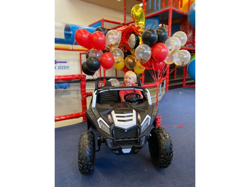 Detské elektrické autíčko Buggy UTV Strong má výkonný elektrický motor 180W a nafukovacie gumové kolesá . Vďaka nosnosti do 100 kg a širokému sedadlu sa do autíčka pohodlne posadia dve deti.
