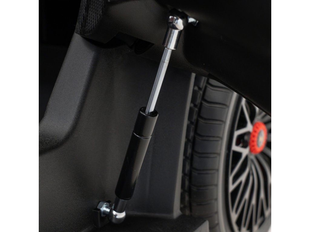 Čierna sedačka je vyrobená z mäkkej ekologickej kože, čo výrazne zvyšuje komfort jazdy, zatiaľ čo otočný volant je svojou veľkosťou a hmotnosťou prispôsobený rukám niekoľkoročných detí, aby zaistil ľahké manévrovanie a vyhýbanie sa prekážkam. Na palubnej doske je hudobný panel s USB portom, AUX portom a bluetoothom. Použitie elektrického autíčka je veľmi intuitívne a jednoduché - všetko, čo musíte urobiť, je zapnúť tlačidlo, potom zošliapnuť plynový pedál a ísť opatrne. Môžete tiež použiť druhé riešenie - sada obsahuje spoľahlivé diaľkové ovládanie 2,4 GHz , ktoré vám umožní ovládať auto.