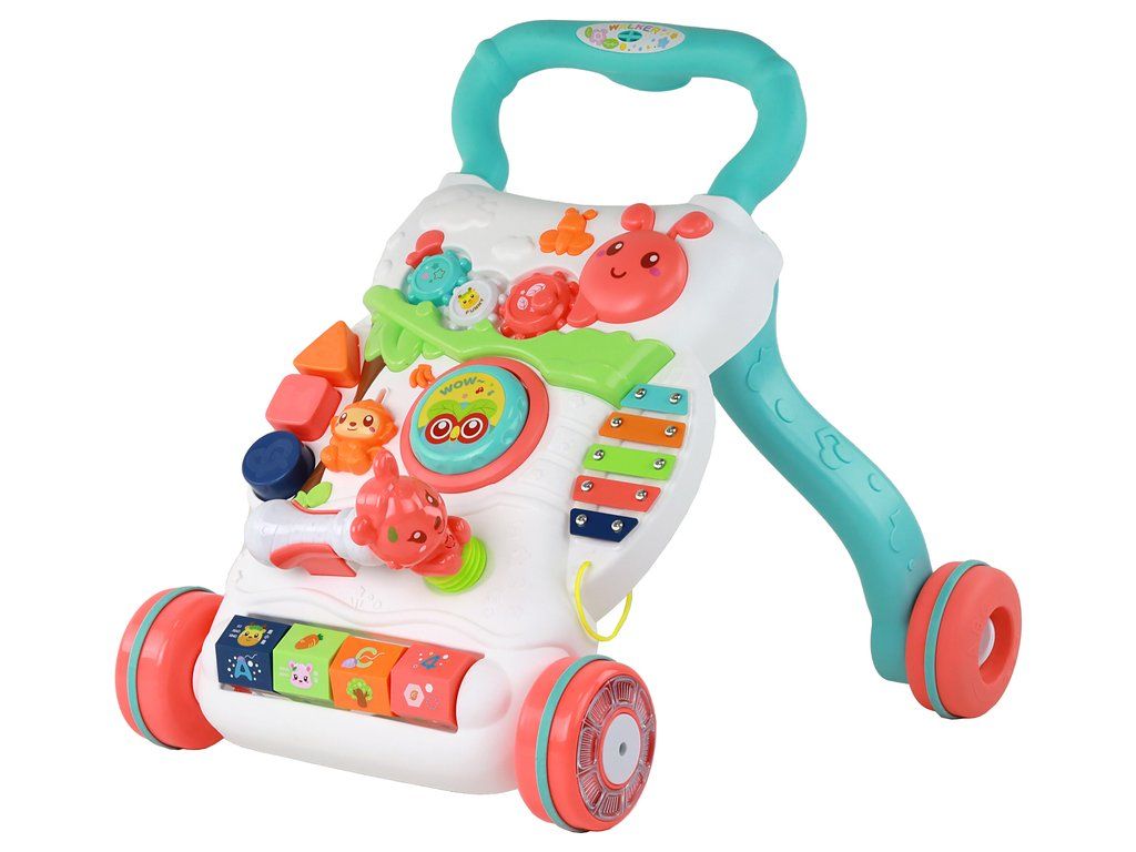 Chodítko pre deti je jedinečná hračka vytvorená pre bábätká, ktoré ešte len začínajú robiť prvé krôčiky. Bezpečné kolieska s gumovými nájazdmi zaisťujú stabilitu a jemný pohyb a navyše majú funkciu aretácie, čo znamená, že odrážadlo je možné použiť ako pojazdnú aj ako stabilnú oporu pre dieťa, ktoré sa učí chodiť. Odnímateľný panel obsahuje mnoho prvkov podporujúcich hru a učenie. Farebné prevody, ktoré sa skladajú do veselej húsenice, poskytujú nielen zábavu, ale aj učia dieťa obratnosti otáčaním a spájaním. Tri vyberateľné bloky v tvare trojuholníka, štvorca a kruhu umožňujú dieťaťu učiť sa tvary a farby. Otočné bloky umožňujú dieťaťu experimentovať s rôznymi kombináciami, vytvárať sekvencie čísel, písmen, geometrických obrazcov alebo kresby zvierat, predmetov, rastlín alebo poznámky.