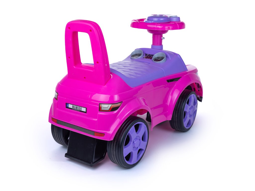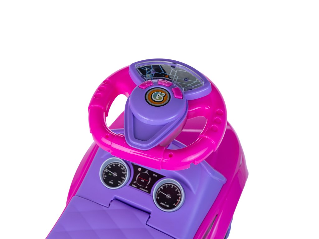 Ružové odrážadlo je z veľmi ľahkej konštrukcie, čo uľahčuje riadiť. Vo veľkej, a predovšetkým mäkkej sedačke je úložný priestor pre malé predmety dieťaťa, napríklad hračky, ktoré si chce vziať so sebou na prechádzku. Pohodlné operadlo pripevnené k sedadlu zaistí, že si batoľa pri hraní udržuje rovné držanie tela a tiež sa cíti pohodlne. Veľké, široké kolesá vám umožnia zvoliť rôzne povrchy, vďaka ktorým bude auto jazdiť doma aj v záhrade. Nosnosť je 27 kg, a preto bude určite slúžiť vášmu dieťaťu po dlhú dobu.