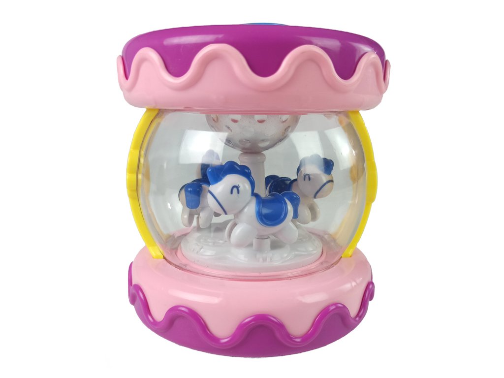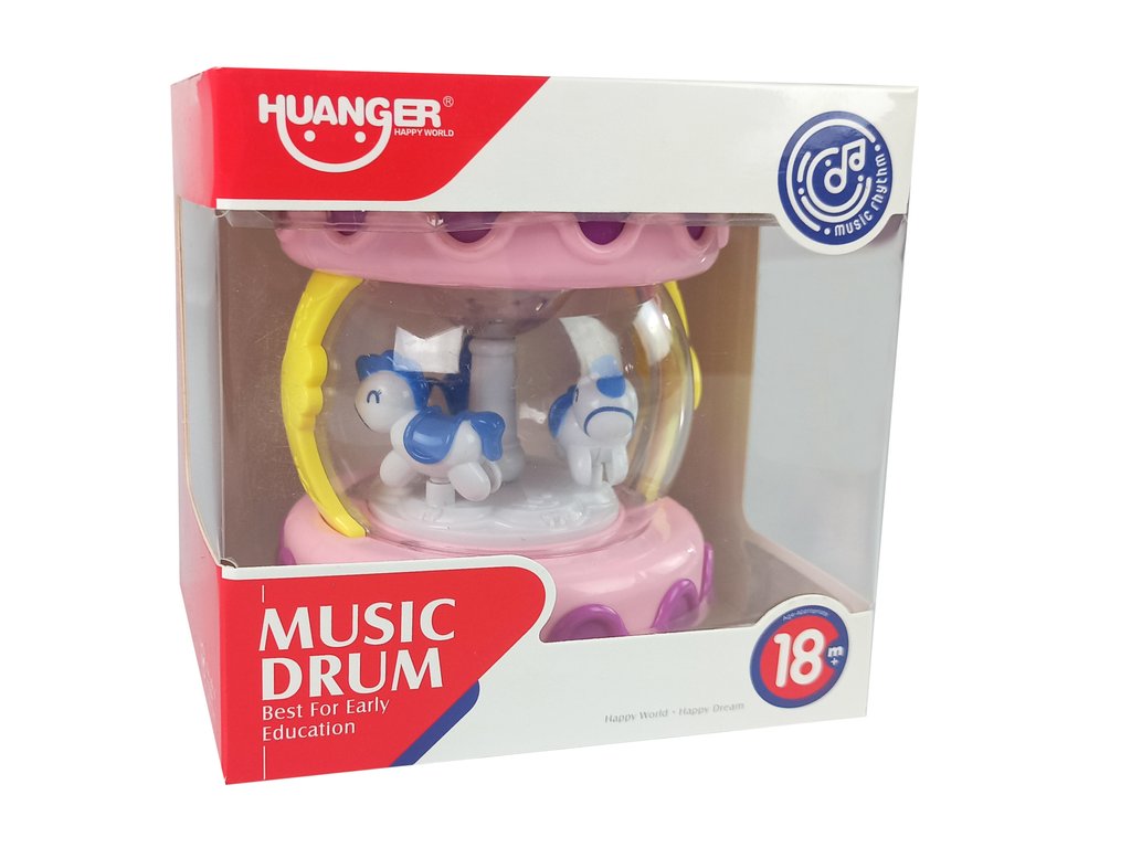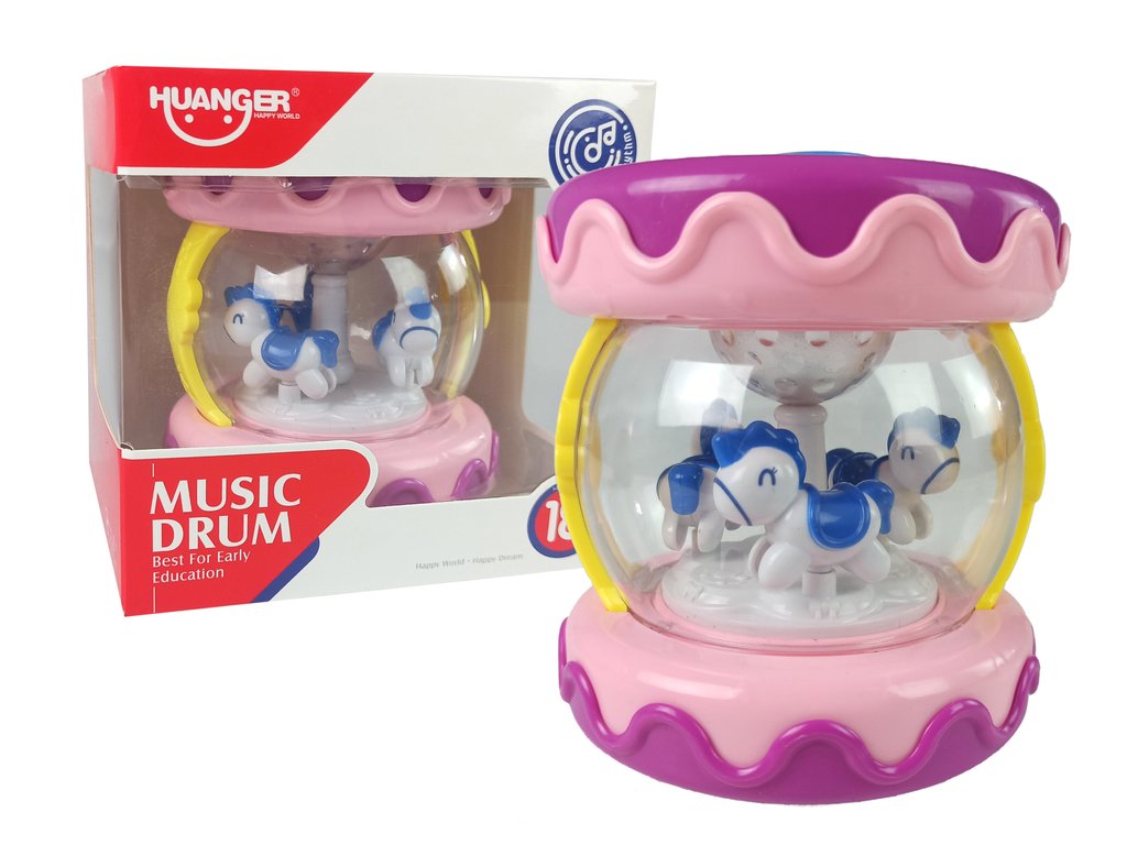 Hračka má ovládanie hlasitosti a svetelné efekty. Ďalšou atrakciou, ktorá upúta pozornosť dieťaťa, je kolotoč s koníkmi vo vnútri bubna.