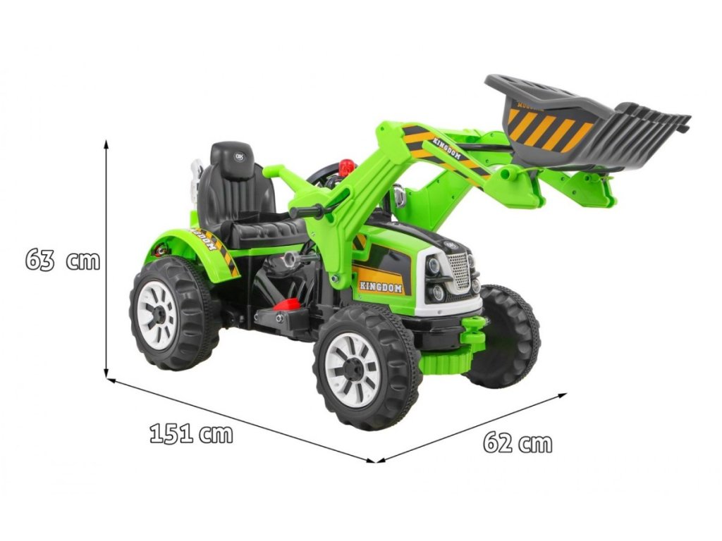 Detský elektrický traktor, ktorý je vďaka masívnej konštrukcii, mohutným kolesám a dvoma elektrickým motorom vhodný pre ničím nerušenú jazdu. S jazdou si poradí aj tí najmenší. Traktor je veľký, silný a vyrobený z najkvalitnejšieho plastového materiálu v modernom štýle a uspokojí chute najmladších motoristických nadšencov. Elektrický traktor má pohyblivú lyžicu. Hračka doporučená výrobcom od 3 rokov. Má certifikát CE.