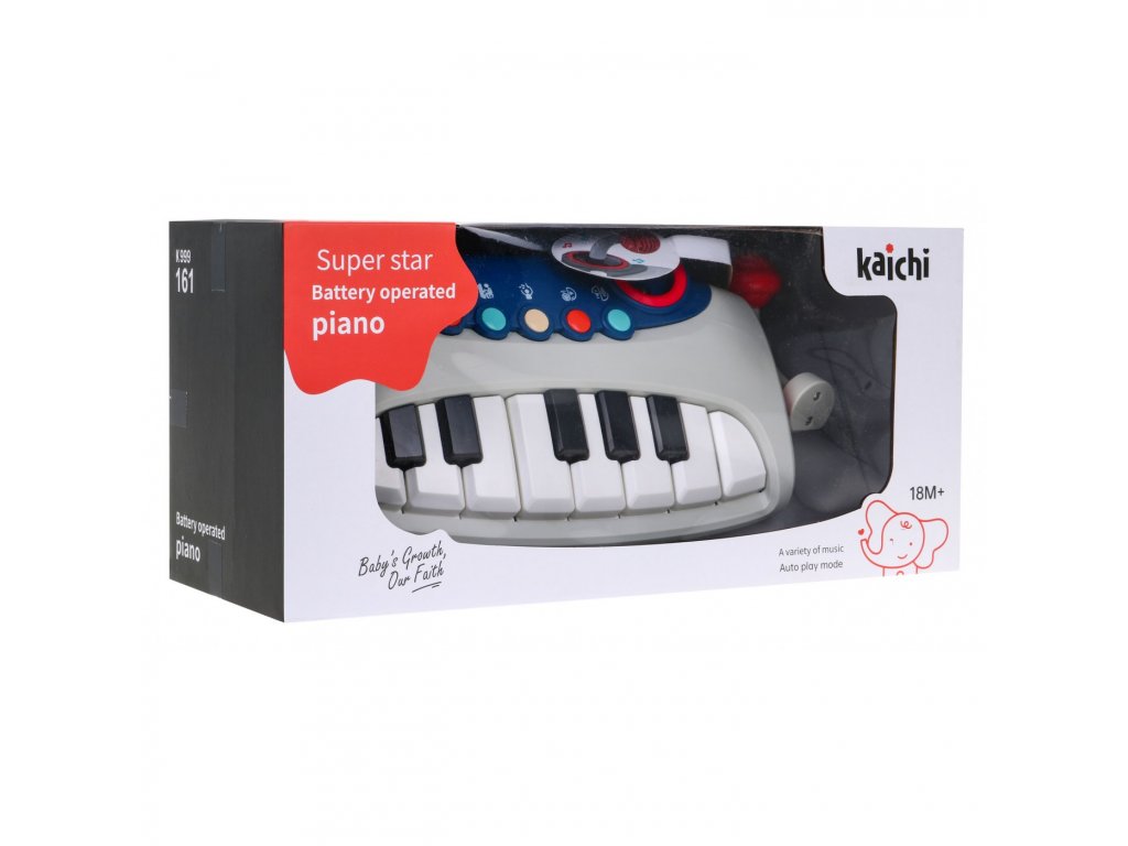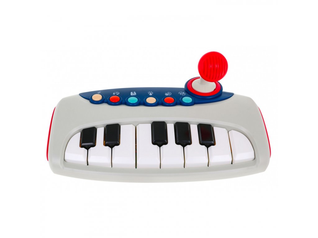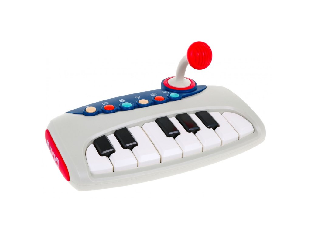 Tento interaktívny keyboard pre deti od 18 mesiacov odporúčame ako prvý nástroj. Dieťa sa naučí zvuky a základy hry na klávesy, ale tiež sa bude baviť vďaka farebnému podsvieteniu a vopred nahraným veselým melódiám. Detský klavír na hranie má rad interaktívnych funkcií , ktoré sa aktivujú pomocou farebných tlačidiel nad klávesmi.