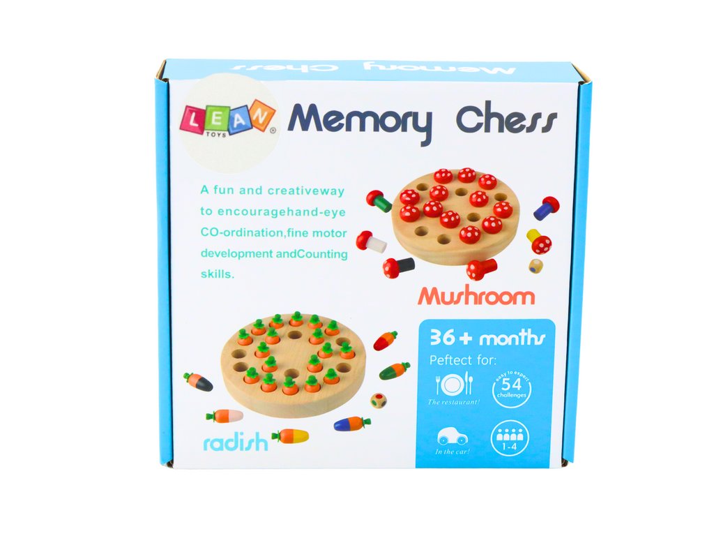 Drevená hra pamäťový šach muchotrávky