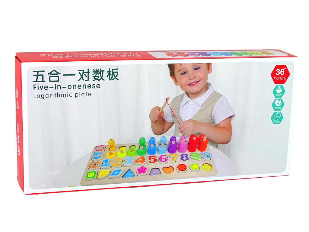 Drevená vzdelávacia tabuľa 4 v 1 čísla písmená tvary triedič mora