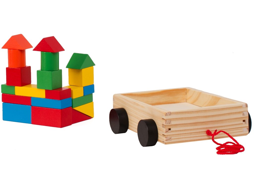 Drevený vozík a farebné kocky
