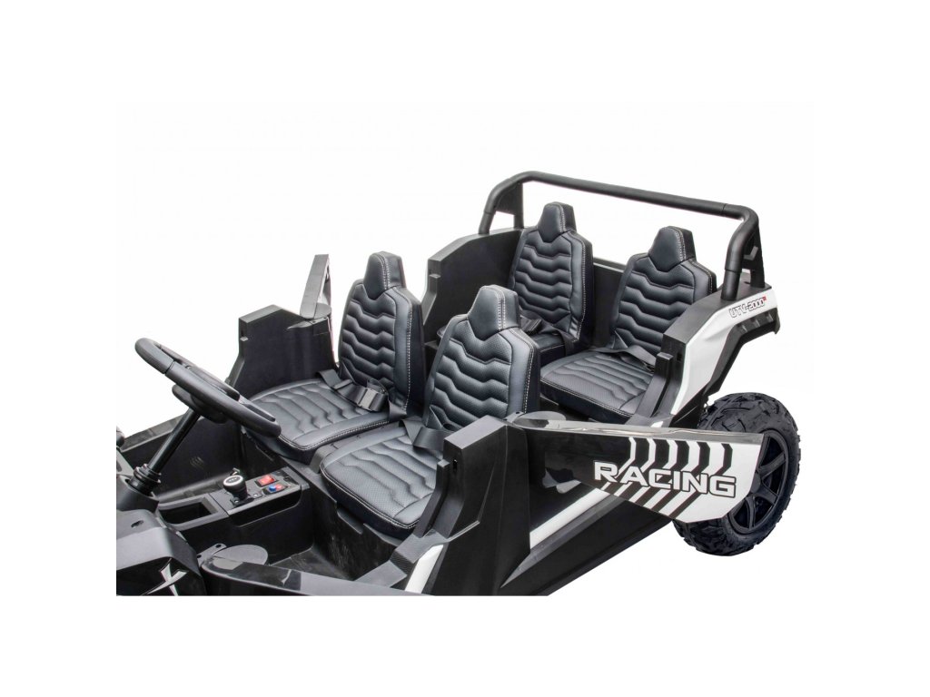 Elektrické autíčko Buggy so štyrmi silnými motormi s celkovým výkonom 600W nesmie chýbať v žiadnej detskej garáži. Autíčko je poháňané batériou s kapacitou 24V 15.6Ah (LI-ión). Maximálne zaťaženie vozítka je 120 kg. Počas jazdy dieťa určite zaujme hudobný panel s MP3, Bluetooth, USB a vopred nahranými melódiami.