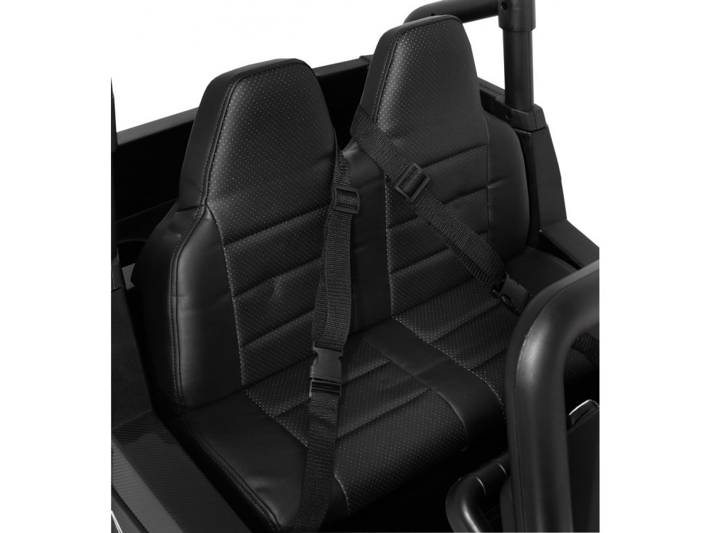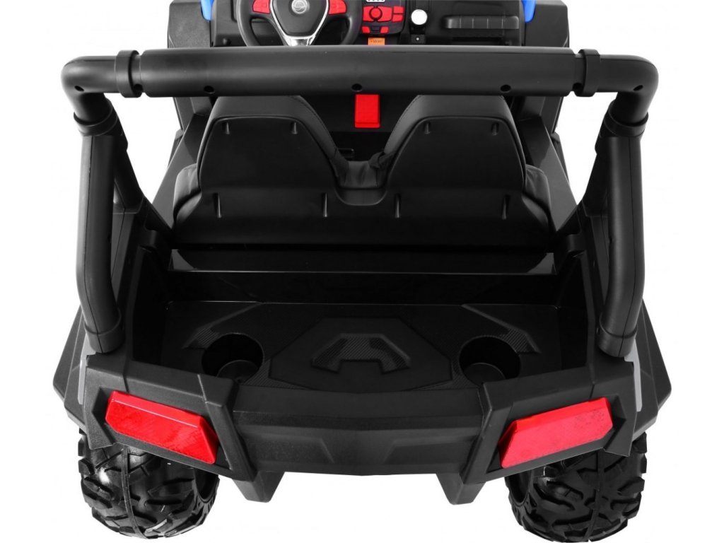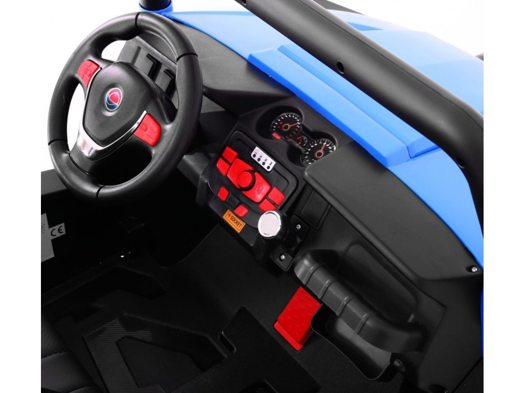 Detské elektrické autíčko Buggy bez väčších problémov zvláda jazdu po teréne a rôzne prevýšenia. Vďaka vysokému podvozku je priamo určené pre jazdu v teréne a cez kaluže. Ak máte doma malého pretekára, prípadne závodníci, potom je toto autíčko stvorené pre Vás. Po stlačení štartovacieho gombíka sa ozve štartovací zvuk a rozsvieti sa predné svetlá. Tie je možné prepínať pomocou tlačidla na ovládacom paneli. Môžu svietiť, blikať alebo jednoducho zostať vypnuté. V autíčku môžete naladiť FM rádio, spustiť nahranú hudbu alebo ho spárovať s telefónom pomocou BT funkcie a prehrávať hudbu priamo z telefónu. Vďaka trom předehraným pesničkám pomôžete deťom sa zdokonaľovať v angličtine. Tieto funkcie dieťa prepína pohodlne aj na volante. Na paneli môžete ovládať hlasitosť, čo ocenia hlavne rodičia :)