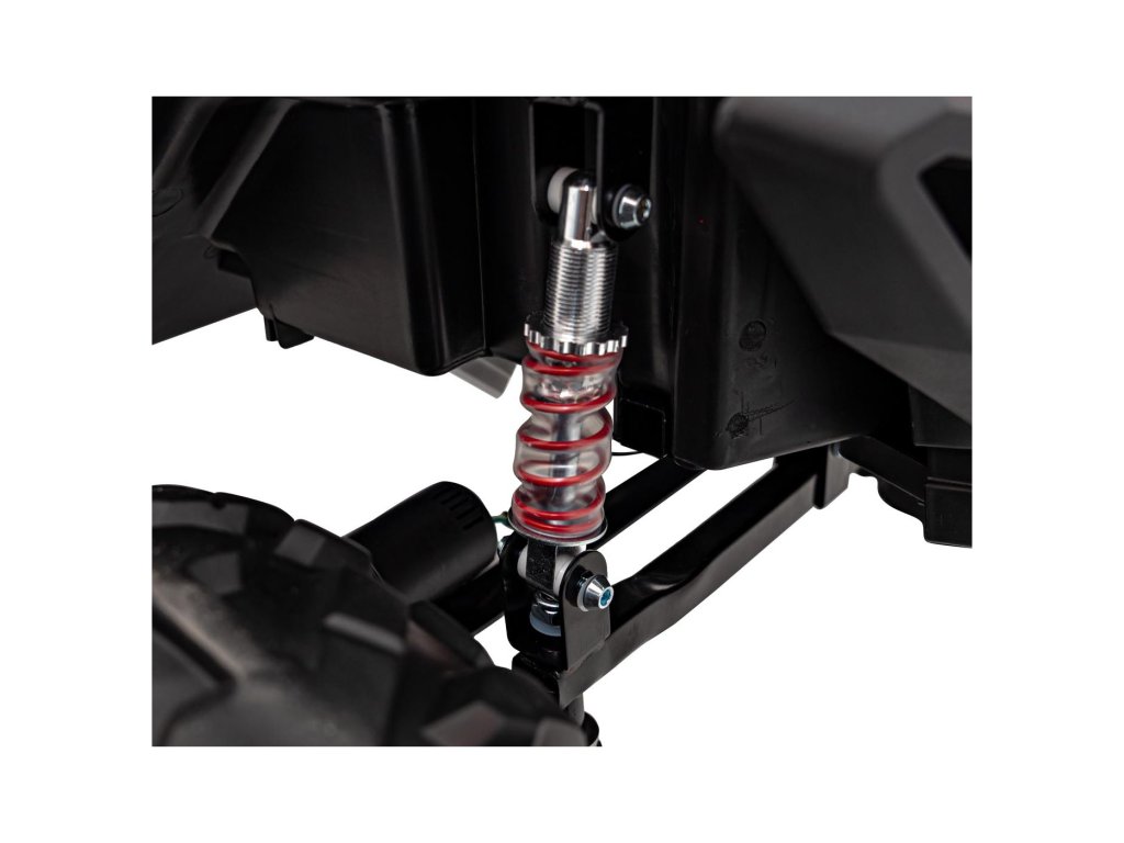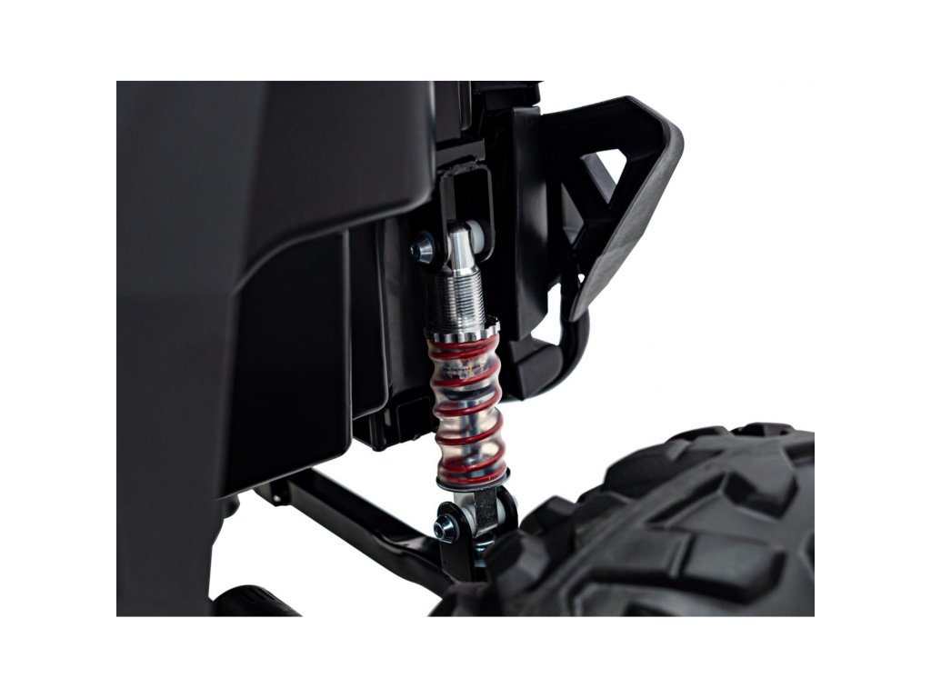 Detské autíčko Buggy UTV-MX 2000N prichádza na mäkkých penových EVA kolesách, ktoré sú tiché a prispôsobia sa rôznym typom terénu. Dieťa sa posadí do pohodlne tvarovanej sedačky z ekologickej kože ao bezpečnosť sa postarajú bezpečnostné pásy.