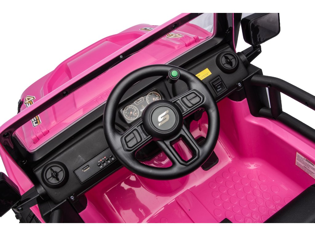 Elektrické autíčko jeep 4Speed má štyri motory s výkonom 45W a batériu s kapacitou 12V 10Ah. Autíčko má hudobný panel s predohranými melódiami, vstupy pre USB a Bluetooth. Na volante je umiestnený klaksónom. Autíčko je vybavené prednými LED svetlami. Autíčko sa naštartuje pomocou kľúča a budete počuť charakteristické zvuky motora.