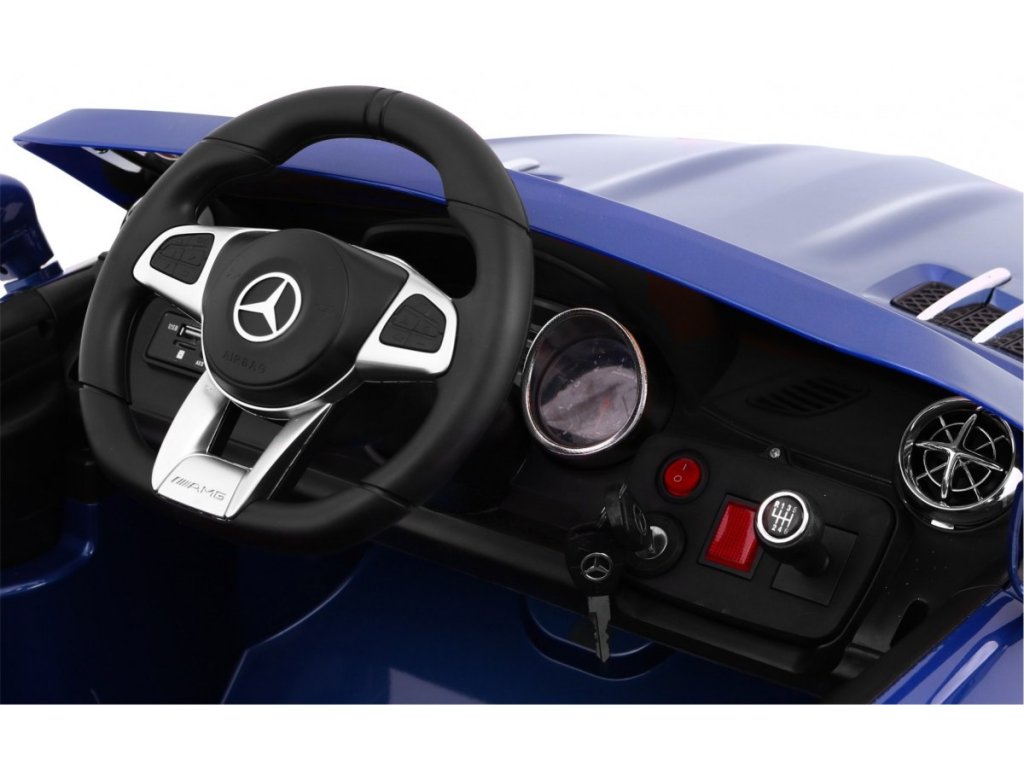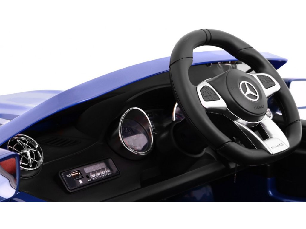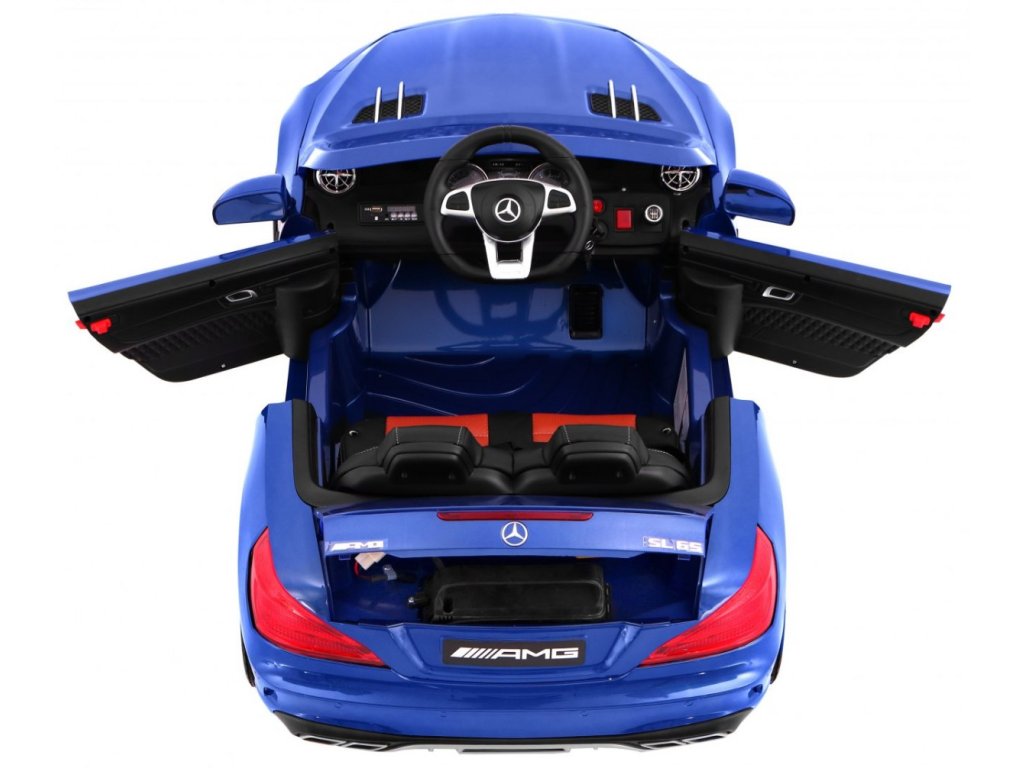 Detské elektrické auto s licenciou Mercedes Benz AMG SL65. Autíčko je jednomiestne má veľmi pohodlnú koženú sedačku, ktorá je opatrená bezpečnostným pásom. Mercedes Benz AMG má realistický vzhľad, originálne znaky, prepracované detaily. Autíčko je tiež vybavené svietiacimi prednými a zadnými svetlami s originálnou optikou, hudbou a realistickými zvukmi. Autíčko je tiež vybavené diaľkovým ovládaním, pomocou ktorého môžete riadiť smer a bezpečnosť jazdy Vášho dieťaťa. Autíčko ľahko zvládne nerovné, spevnené aj nespevnené terény a mierne kopčeky s max. Stúpaním 10%.