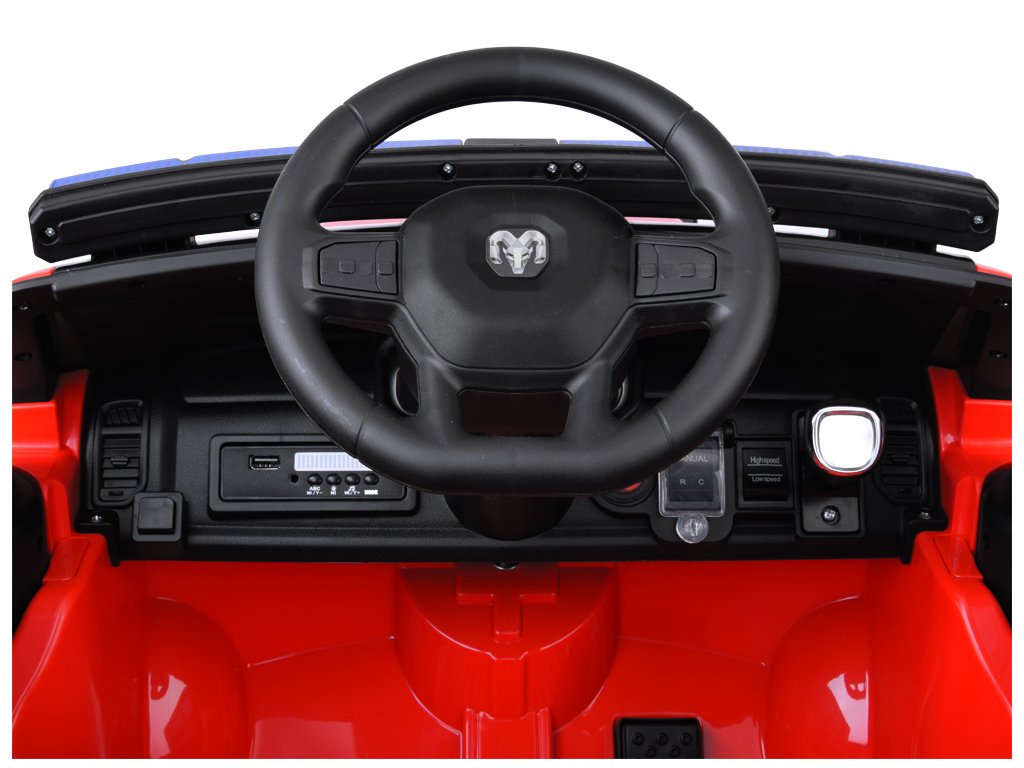 Elektrické autíčko RAM Pick-up má štyri motory s celkovým výkonom 100W a batériu s kapacitou 12V 10Ah. O pohodlnú jazdu sa postarajú penové EVA kolesá a sedačka potiahnutá ekologickou kožou. Dieťaťu jazdu určite spríjemní hudobný panel s MP3 a USB . Nosnosť autíčka je 30 kg . Autíčko má predné osvetlenie a otváracie dvere.
