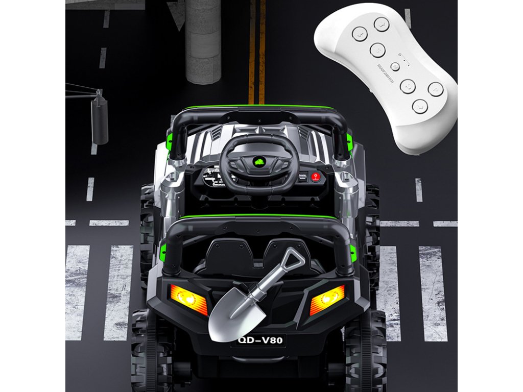 - Ďalšie vybavenie: Digitálny audio prehrávač s USB vstupom, realistické svetlá, zvukové efekty, diaľkové ovládanie pre rodičov
