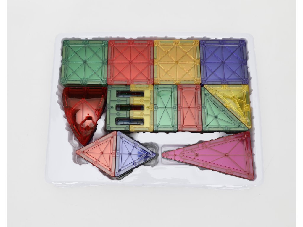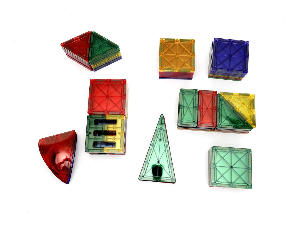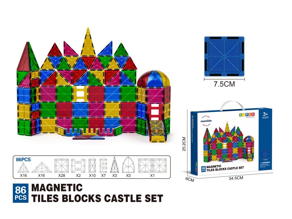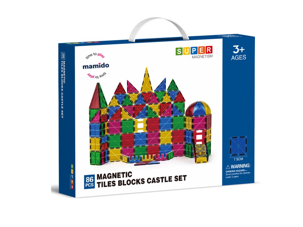 Súprava obsahuje 86 magnetických panelov v pestrých farbách, ktoré sa ľahko spájajú do rôznych tvarov. Priame tvary sú perfektné na vytváranie veľkých stien, podláh aj detailných konštrukcií. Stavebnica podporuje kreativitu, logické myslenie aj priestorovú predstavivosť.