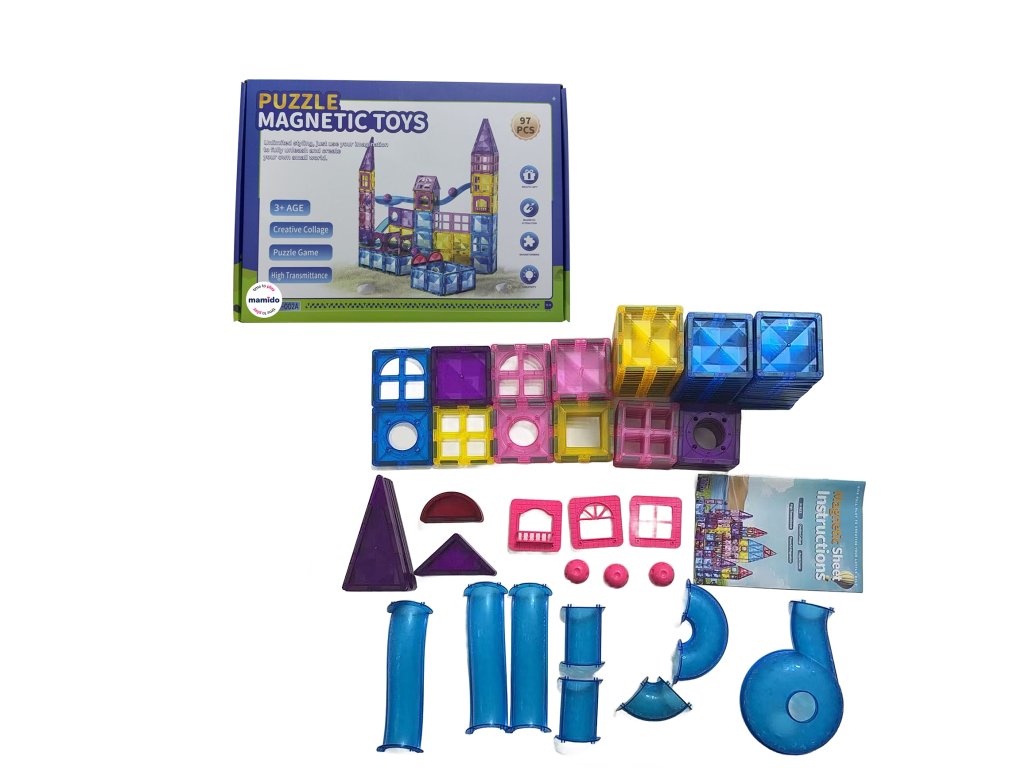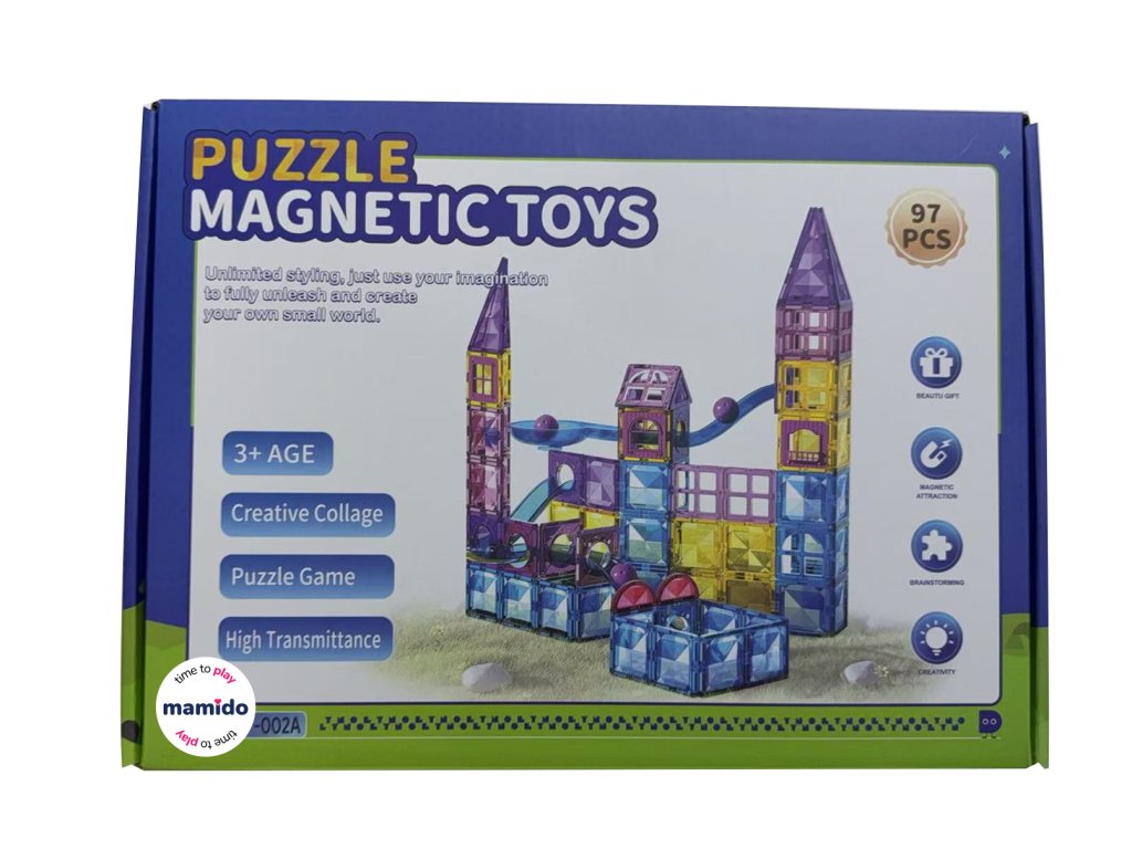 Kúzelná magnetická stavebnica s 97 farebnými dielikmi umožní deťom postaviť rozprávkové hrady, mestečká i zábavné parky. Vďaka jednoduchému magnetickému systému sa diely ľahko spájajú a odpájajú, takže deti môžu neustále meniť tvary a stavať nové kombinácie. Zo stavebnice je možné vytvoriť napríklad hrad snov, veterný mlyn, zábavný park, kúzelný domček, mosty alebo mesto Neón.
