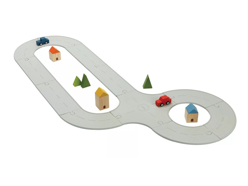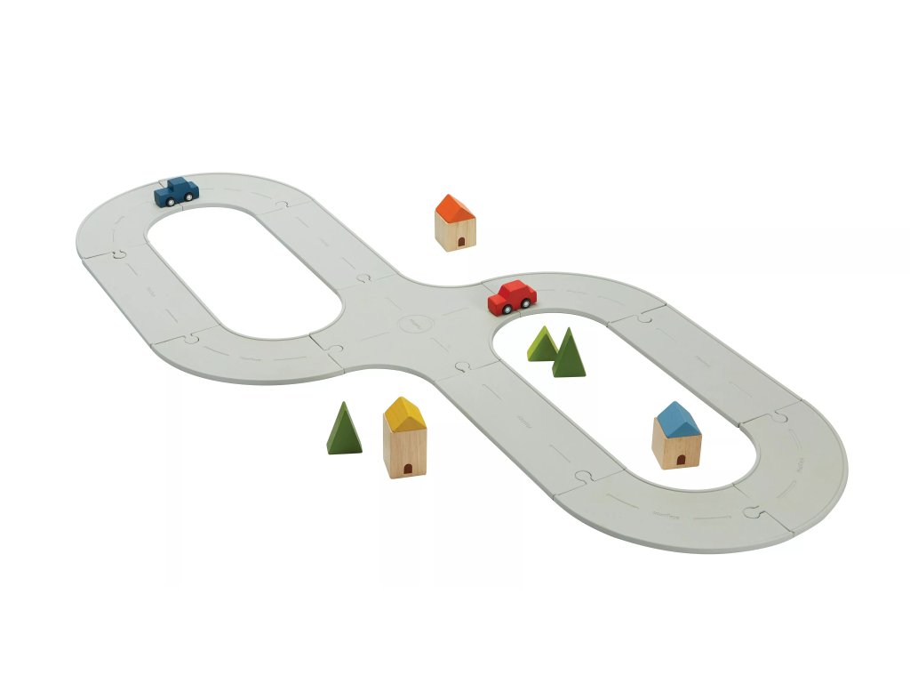 Univerzálna súprava na stavbu autodráhy aj vláčikodráhy vhodná do detských izieb aj herne. Pružné gumové dieliky umožňujú skladať dráhu vnútri aj vonku a podporujú zručnosť, predstavivosť, logické myslenie a koordináciu detí.