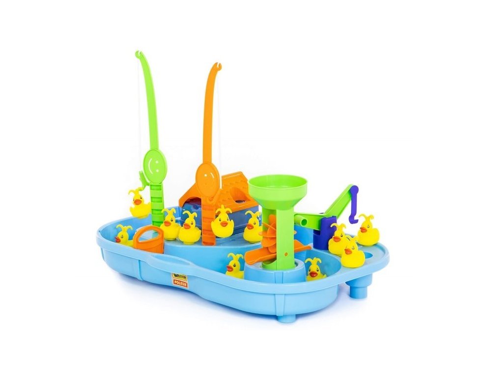 Sada sa skladá z bazéna, ktorý musí byť naplnený vodou. Takzvaná plavebná dráha a v jej strede sú vodné chodby, po ktorých plávajú káčata. Každý hráč (maximálne dva) má rybársky prút s hákom, na ktorý musí chytať nepoddajné káčata. Ten, ktorý získa maximum, vyhráva!