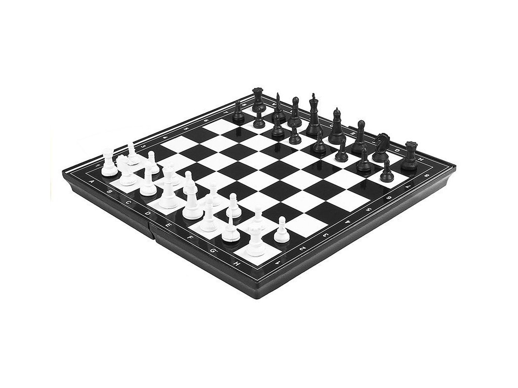 1. Šach: Hra prebieha na šachovnici so 64 poľami (8x8) s figúrkami (figúry, pešiaci) špecificky usporiadanými pre každého hráča.