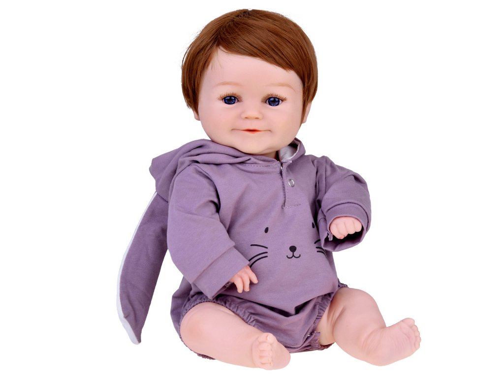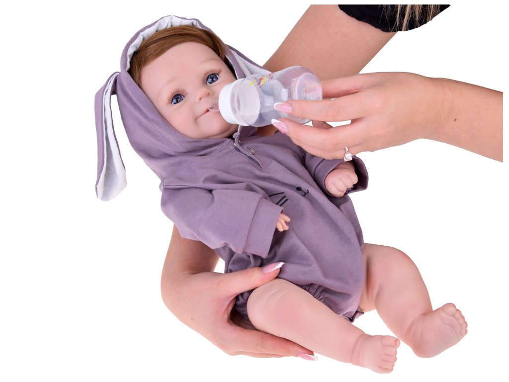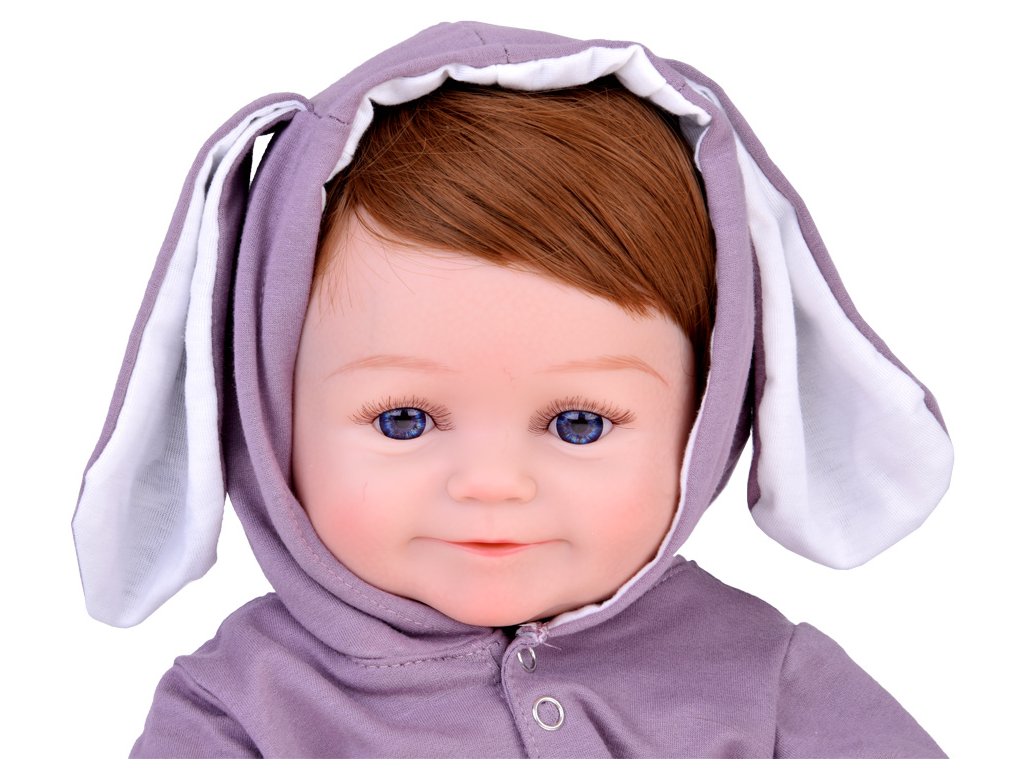 Interaktívna bábika chlapčeka vyzerá ako živá, takže hra na mamičku alebo pestúnku je ešte realistickejšia. Roztomilý chlapček je vyrobený z mäkkej gumy s dôrazom na najmenšie detaily, ako sú rozkošné záhyby a realisticky reprodukované oči . Chlapček má husté hnedé vlasy, ktoré obklopujú priateľskú tvár. Pozornosť priťahujú jeho veľké modré oči obklopené hustými riasami. Vzhľad dotvára drobný nos a usmievavá tvár. Chlapček je oblečený do králičieho body s kapucňou v tlmenej farbe. Kapucňa je navyše ozdobená dlhými králičím ušami.