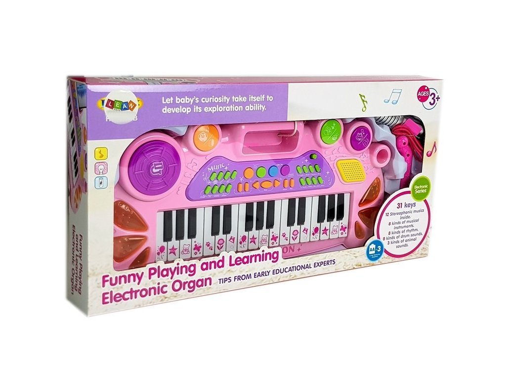 Ružový keyboard s klávesy, ktoré vydávajú rôzne zvuky, pomocou tlačidiel možno upraviť tempo a hlasitosť. Veľkou výhodou je, možnosť pripojenia telefónu k nástroju a prehrávanie obľúbenej hudby. Hračka podporí rozvoj hudobných schopností, sluch, rytmus a predstavivosť.