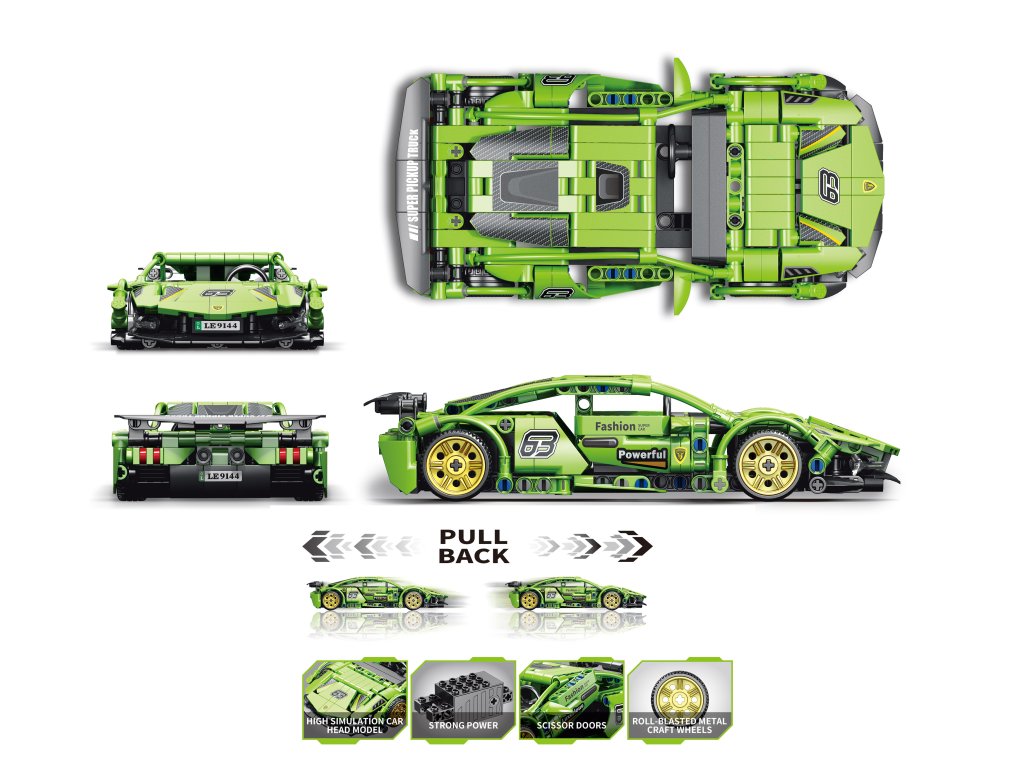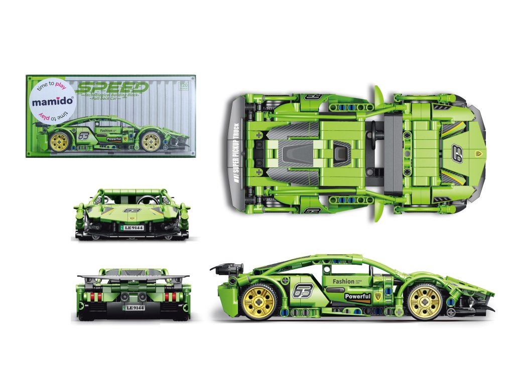 Zostavenie auta je zábavné a rozvíja logické myslenie, trpezlivosť aj priestorovú predstavivosť. Hotový model vyniká športovým dizajnom, aerodynamickými krivkami a pohyblivými kolesami. Balenie obsahuje stavebné dieliky, návod a samolepky na doladenie vzhľadu.