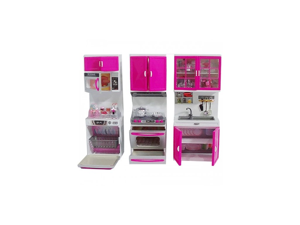 Dizajn kuchynky umožňuje otvárať a zatvárať dvierka, navyše sa vyznačuje svetelnými a zvukovými efektmi, vďaka ktorým prvky zostavy senzačne napodobňujú ich skutočné náprotivky. Ružová a biela farba kuchynky je veľmi dievčenskú, skladá sa z impozantného množstva doplnku, čo bude určite hitom.