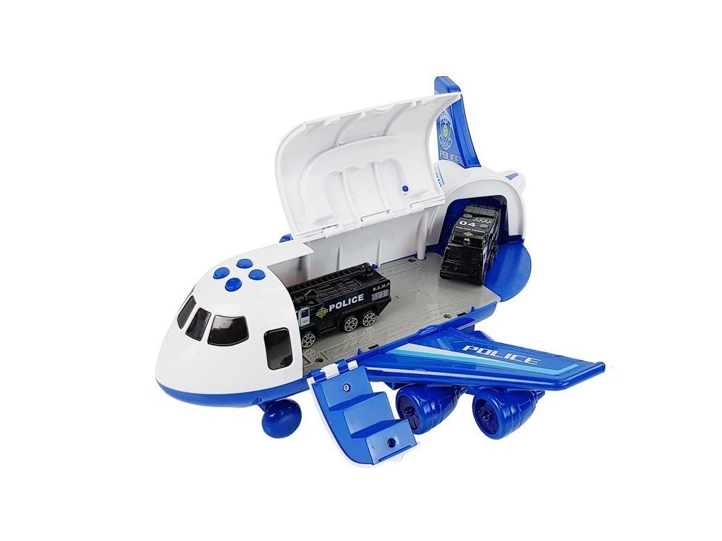 Lietadlo na prepravu vozidiel je vyrobené v mierke 1:64. Lietadlo má otvárateľnú stranu, takže vám umožní uschovať autíčka vo vnútri. Na hornej časti lietadla sa nachádza rukoväť. Lietadlo má zvukové a svietiace efekty. V balení sa nachádzajú tri policajné autá.