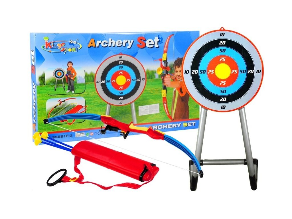 Luk s terčom na stojane, tulec, 3 šípy, 85 cm, modrý