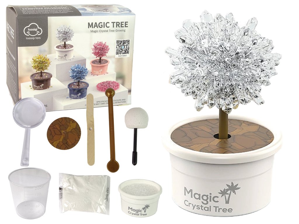 Vitajte vo svete kúziel a vedy! Predstavujeme magický stromček na pestovanie kryštálov, ktorý vám umožní objaviť tajomstvo vedy prostredníctvom interaktívnej a vzdelávacej hry. Tento kúzelný set nie je len atraktívnou hračkou, ale aj výnimočným nástrojom pre rozvoj chemických a vedeckých schopností. Objavte tajomstvo prírody a pozorujte, ako pred vašimi očami rastú skutočné kryštály!