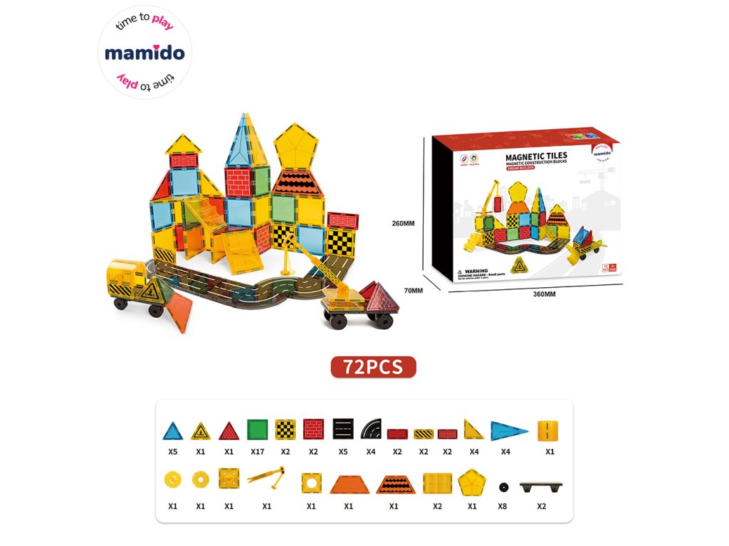 Vydajte sa do sveta dopravy a stavebníctva s originálnou magnetickou stavebnicou, ktorá sa skladá zo 72 dielov. Deti si môžu postaviť celé mesto s cestami, značkami, budovami aj vozidlami. Farebné magnetické dieliky sa ľahko spájajú a umožňujú tvoriť nekonečné kombinácie od jednoduchých stavieb až po prepracované dopravné scény. Súčasťou sady sú aj autíčka s podvozkom na kolieskach, dopravné značky, žeriav a ďalšie doplnky, vďaka ktorým hra získava realistický nádych.
