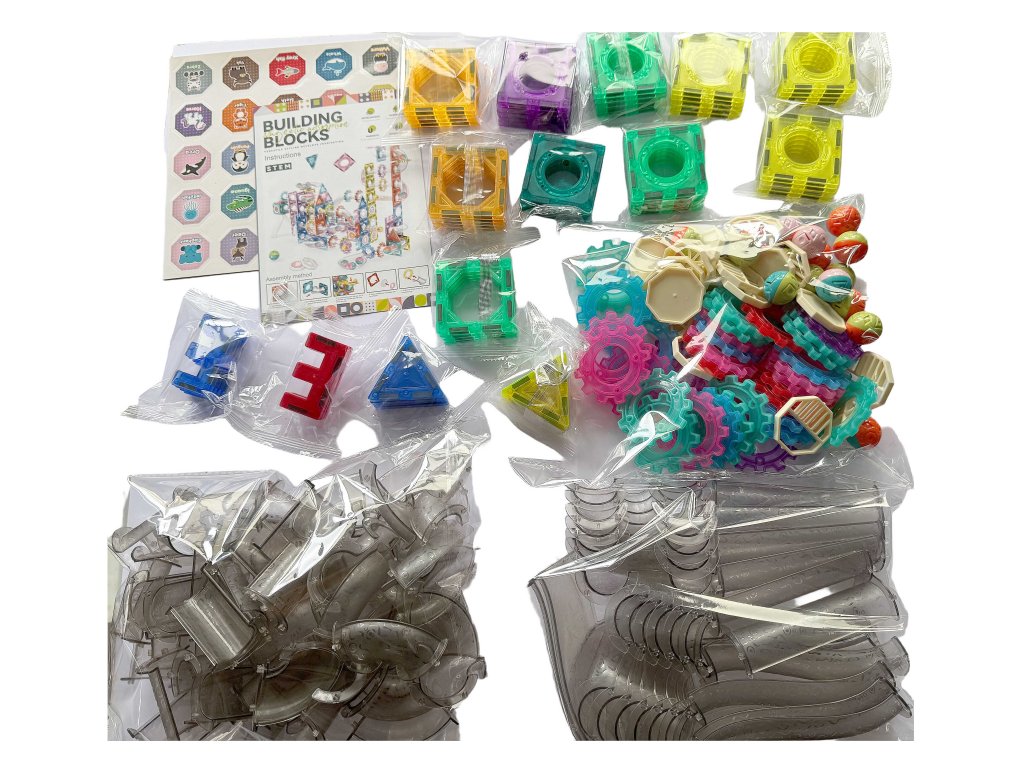 Fantastická magnetická stavebnica, ktorá spája kreatívne stavanie s dynamickou guľôčkovou dráhou! Súprava obsahuje 226 dielov rôznych tvarov, priehľadných tubusov, oblúkov, koliesok a magnetických panelov, vďaka ktorým môžu deti vytvárať vlastné farebné konštrukcie a sledovať, ako guľôčky prechádzajú po ich originálnej trase.