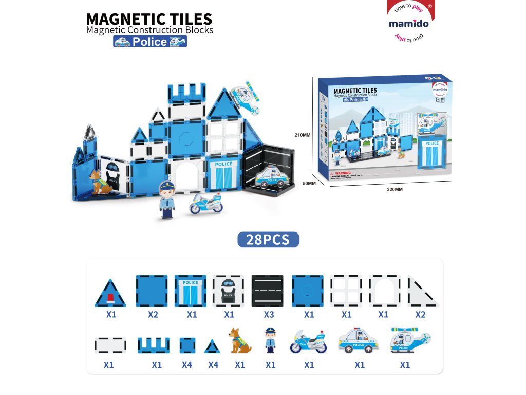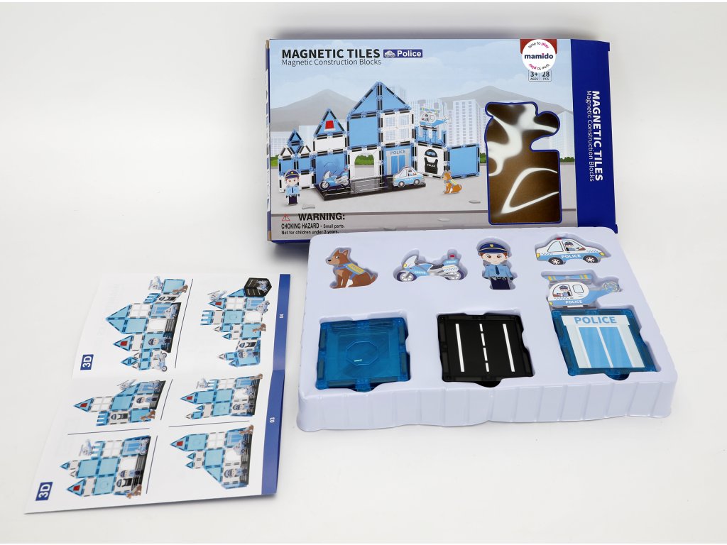 - Obsahuje: magnetické kocky, figúrku policajta, autíčka, vrtuľník a ďalšie