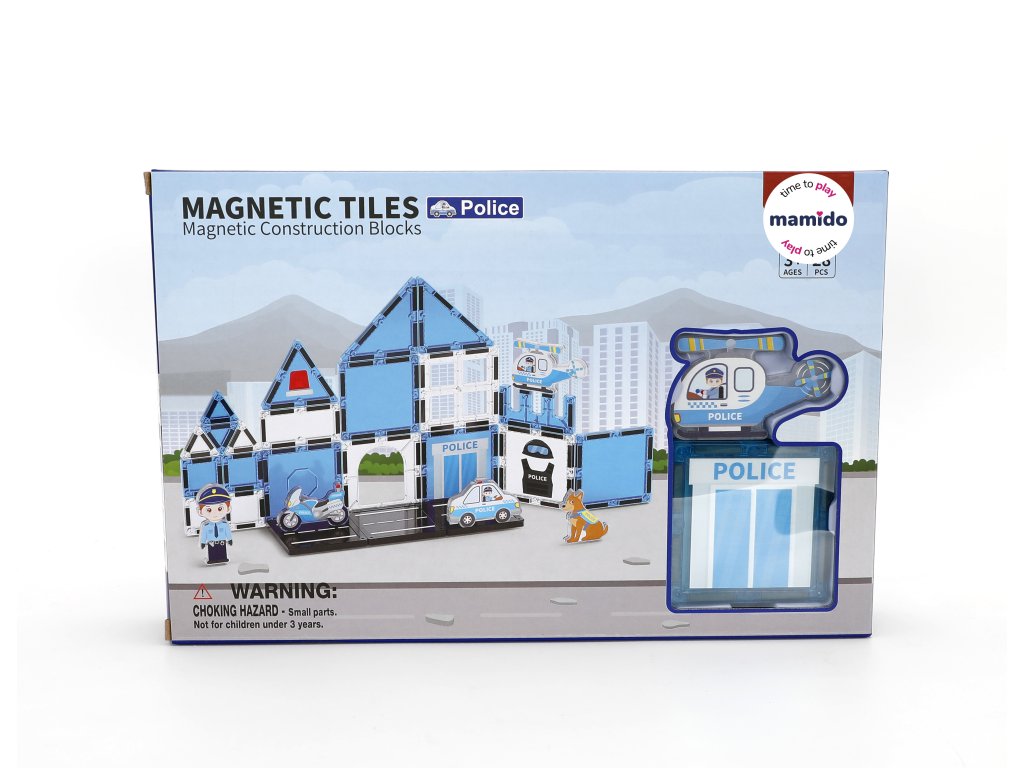 Magnetická stavebnica pre malých staviteľov, ktorí milujú akciu, autá a svet záchranárov. V súprave nájdete figúrky policajtov, policajné auto, motorku, závoru, stopku, semafor aj magnetické dieliky budov na zostavenie vlastného policajného stanoviska. Silné magnety zaistia stabilné spojenie dielikov a ľahké stavanie 3D konštrukcií.