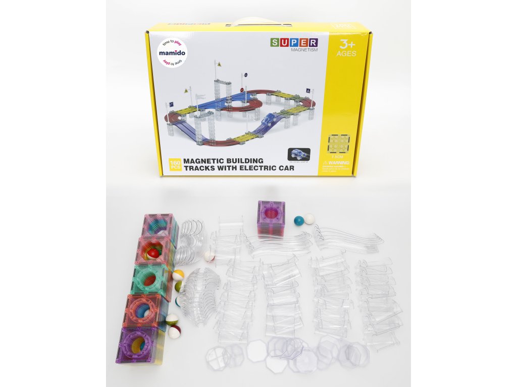 Súprava obsahuje 160 magnetických dielikov vrátane špeciálnych častí na tvorbu dráhy. Vďaka silným magnetom sa panely jednoducho spájajú, takže deti môžu experimentovať s tvarmi aj výškami tratí. Elektrické autíčko samo prechádza celú trasu, čo prináša skvelý zážitok z pohybu a rozvíja technické uvažovanie.