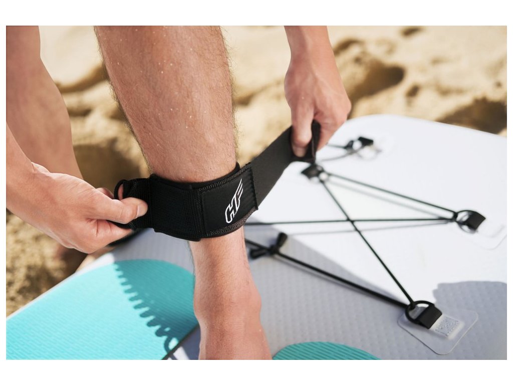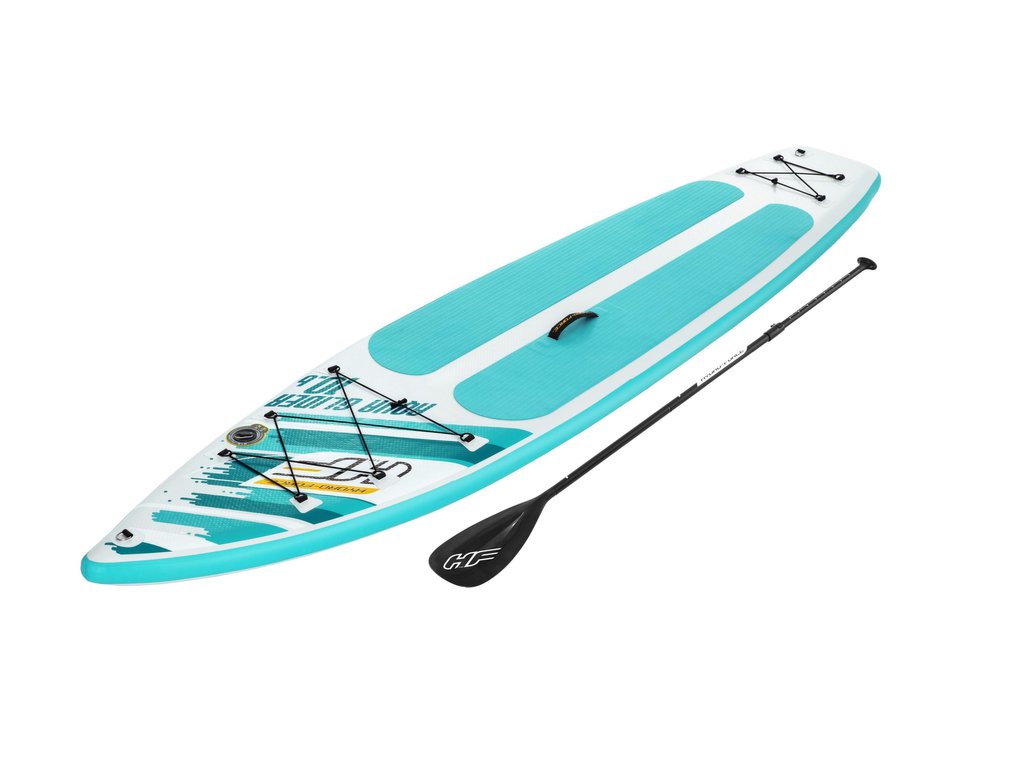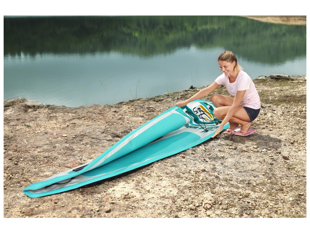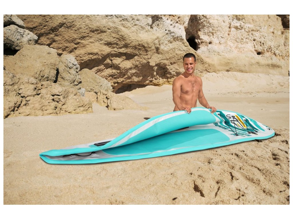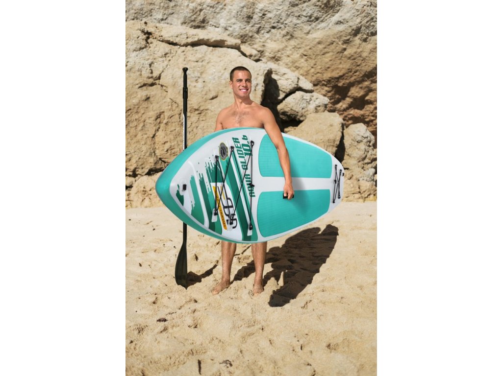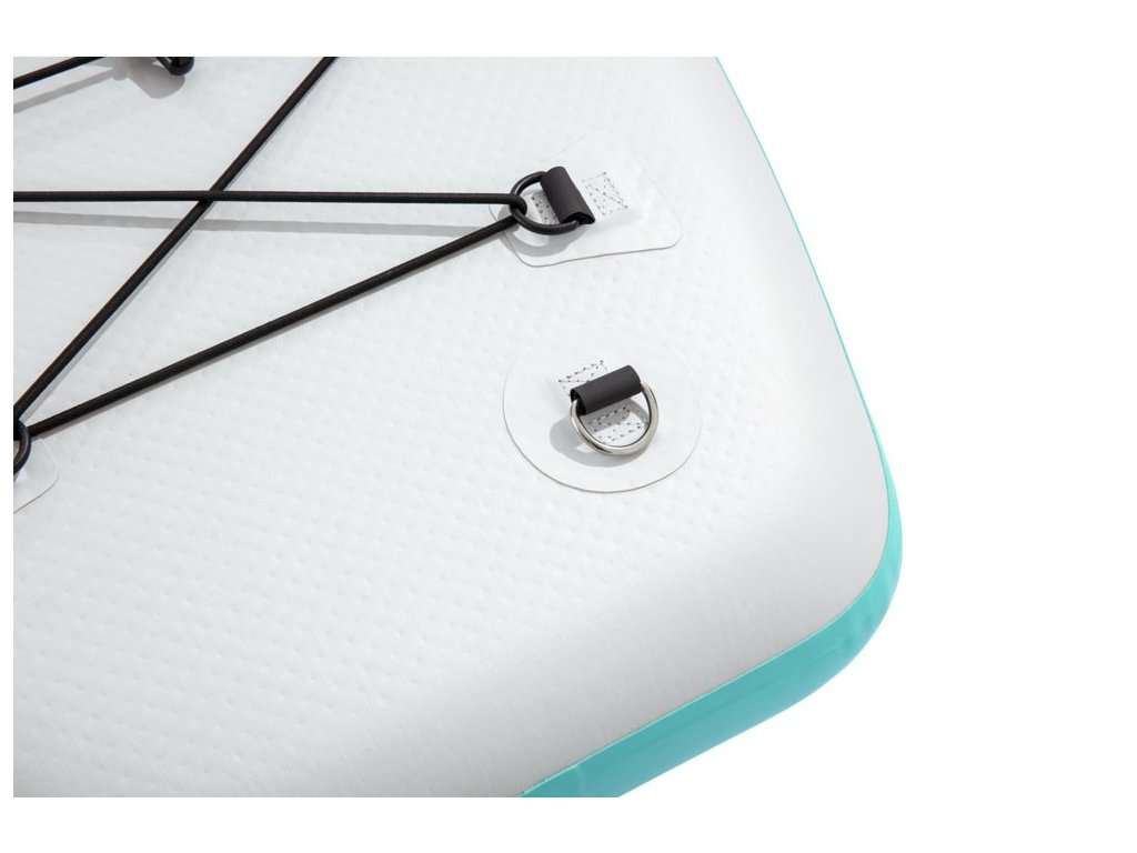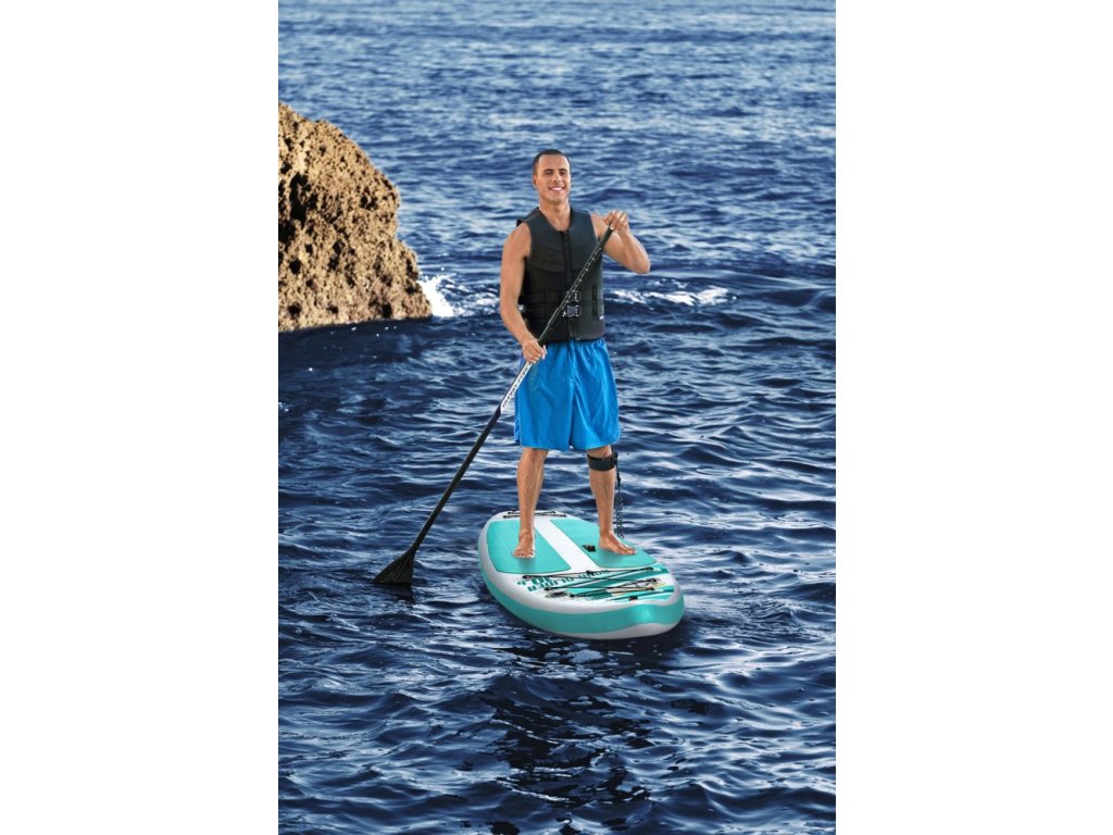 Materiál nafukovacieho paddleboardu je extrémne tuhý, stabilný vo vode a spoľahlivý za všetkých poveternostných podmienok. Ľahké pádlo obsiahnuté v sade výrazne zjednodušuje spôsob riadenia. Odnímateľná plutva zvyšuje silu riadenia a rýchlosť. Doska má veľkú protišmykovú trakčnú podložku, ktorá pomáha udržať rovnováhu.