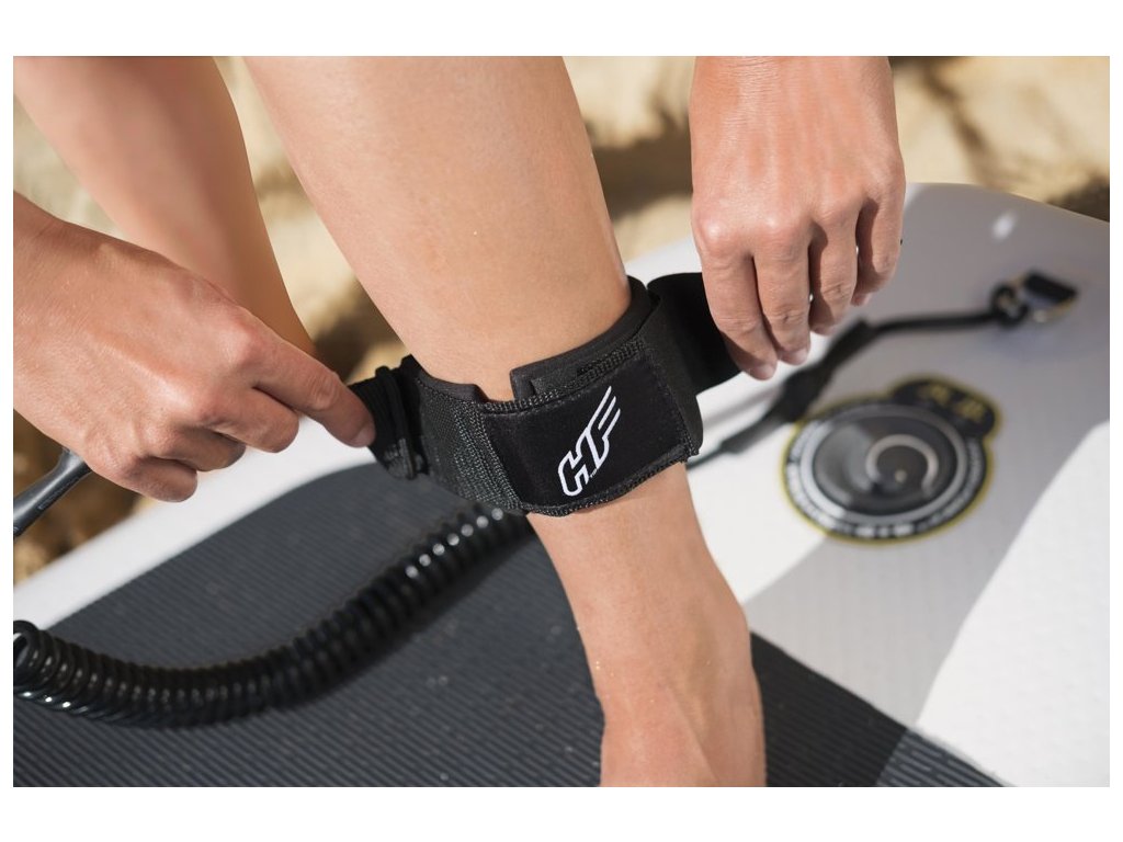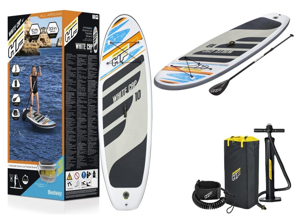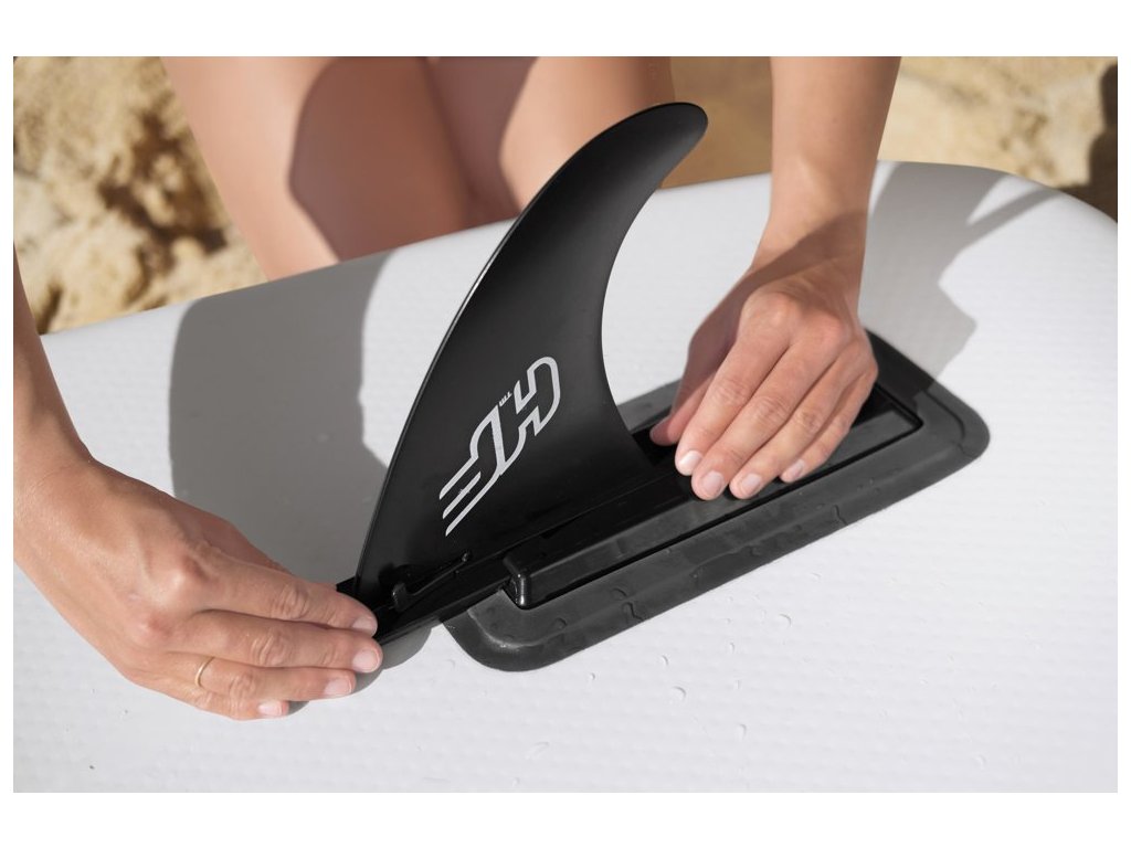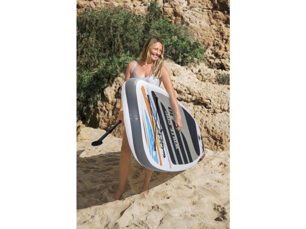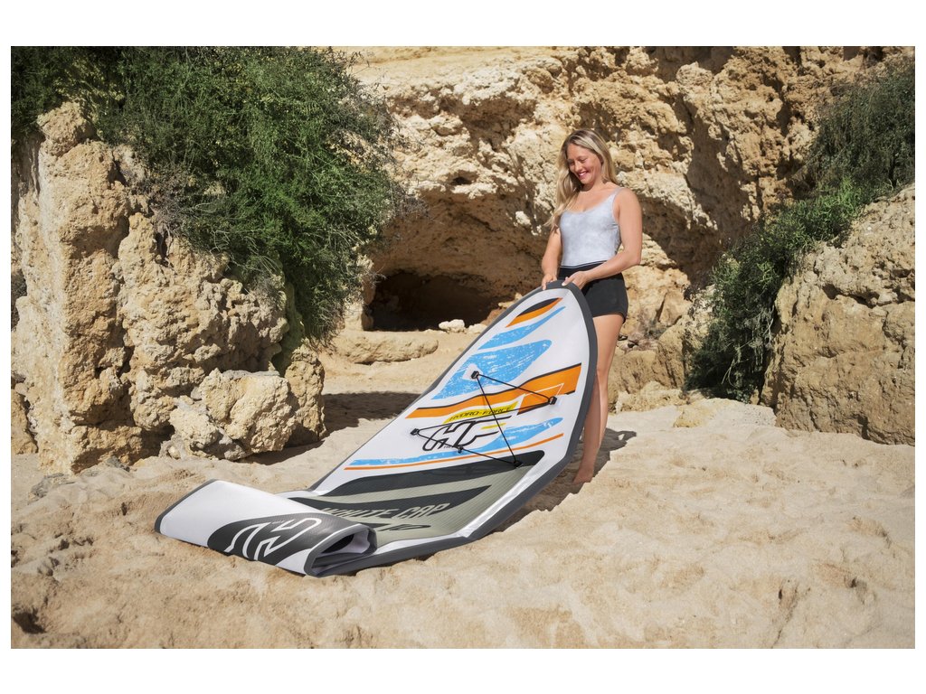 Materiál nafukovacieho paddleboardu je extrémne tuhý, stabilný vo vode a spoľahlivý za všetkých poveternostných podmienok. Ľahké pádlo obsiahnuté v sade výrazne zjednodušuje spôsob riadenia. Odnímateľná plutva zvyšuje silu riadenia a rýchlosť. Doska má veľkú protišmykovú trakčnú podložku, ktorá pomáha udržať rovnováhu.